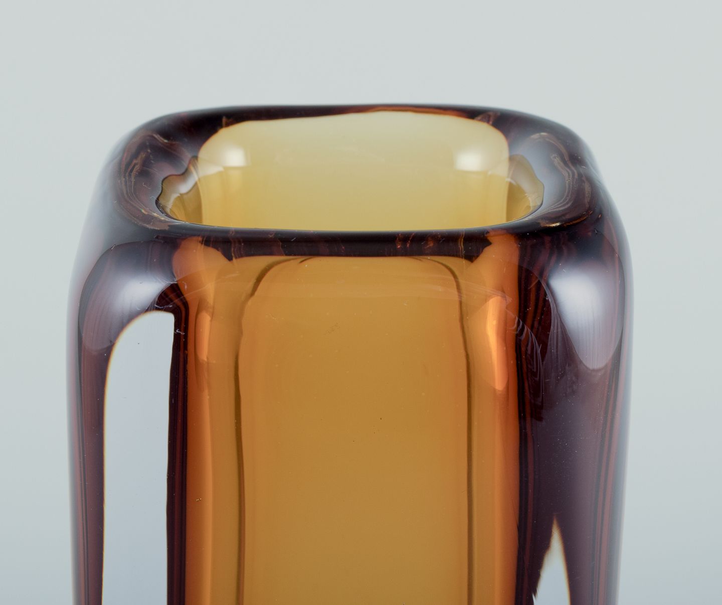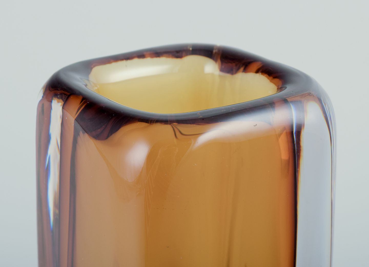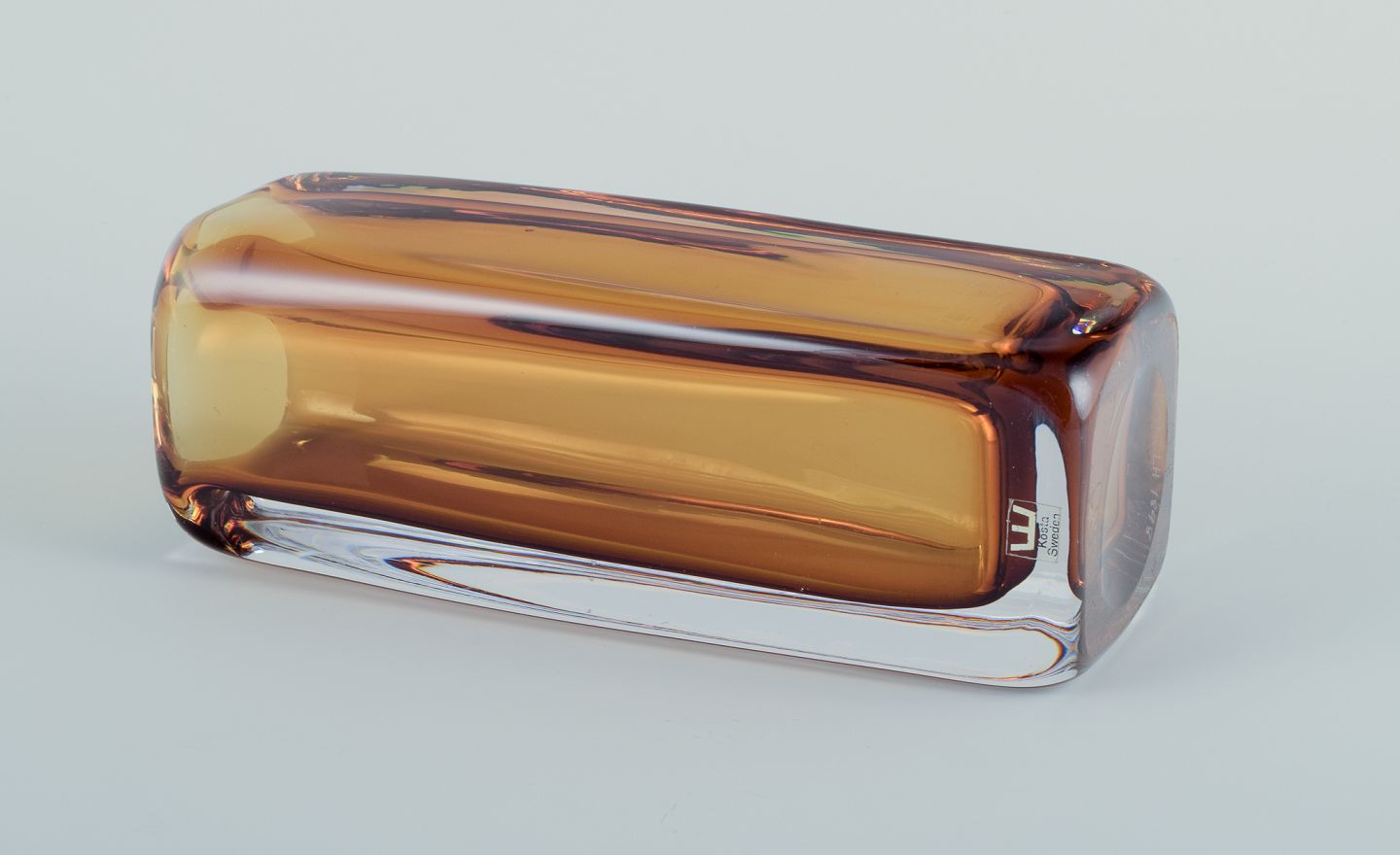 Vicke Lindstrand for Kosta Boda, Sverige. Kunstglasvase i gult og klart glas. Mundblæst.