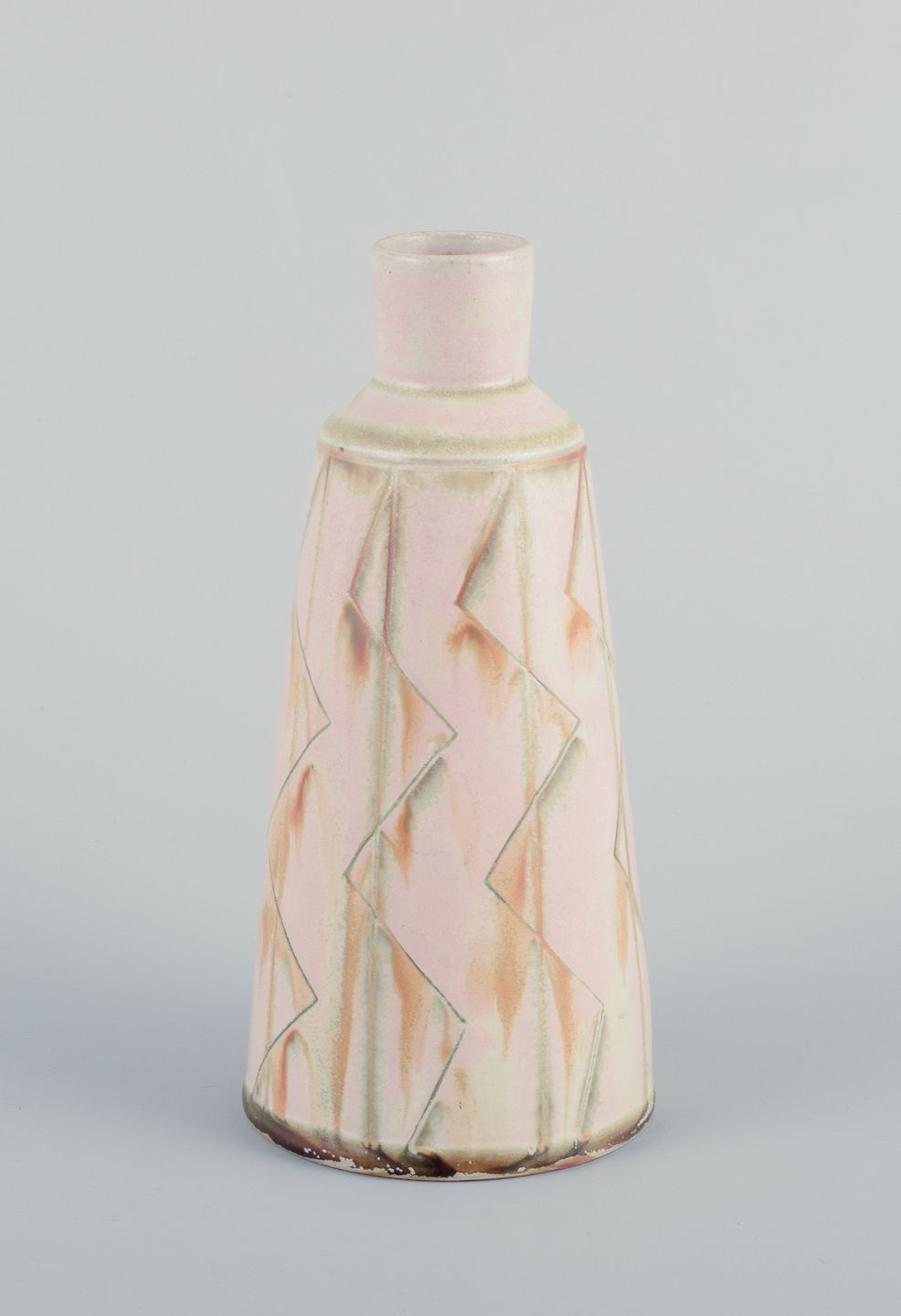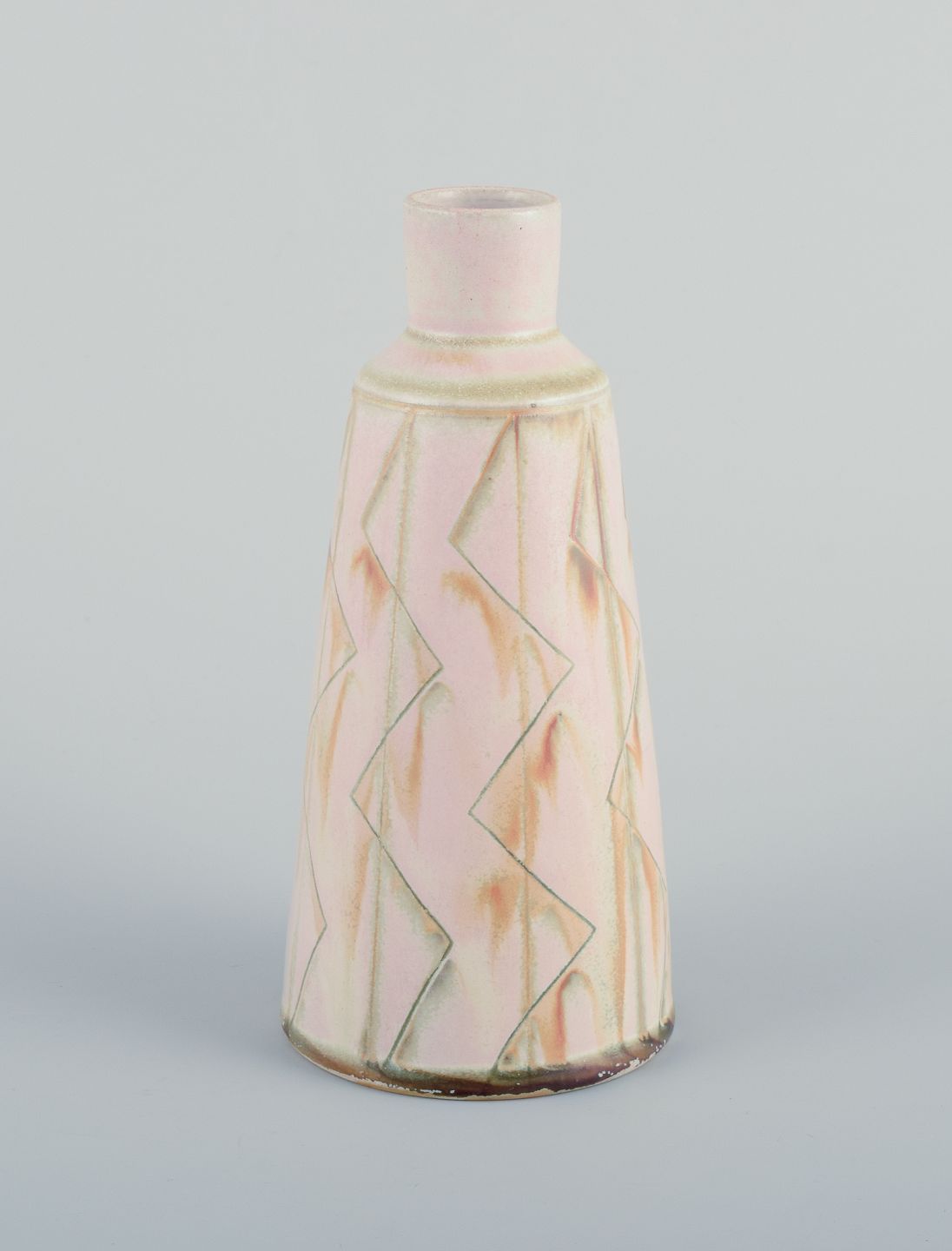Unika keramikvase. Glasur i lyse toner.