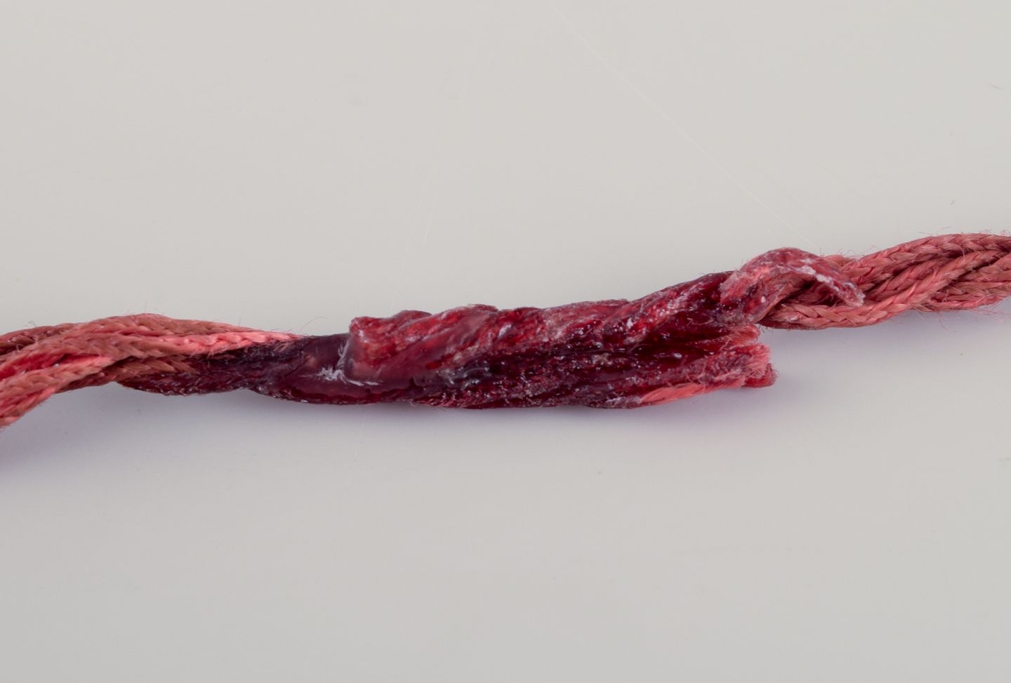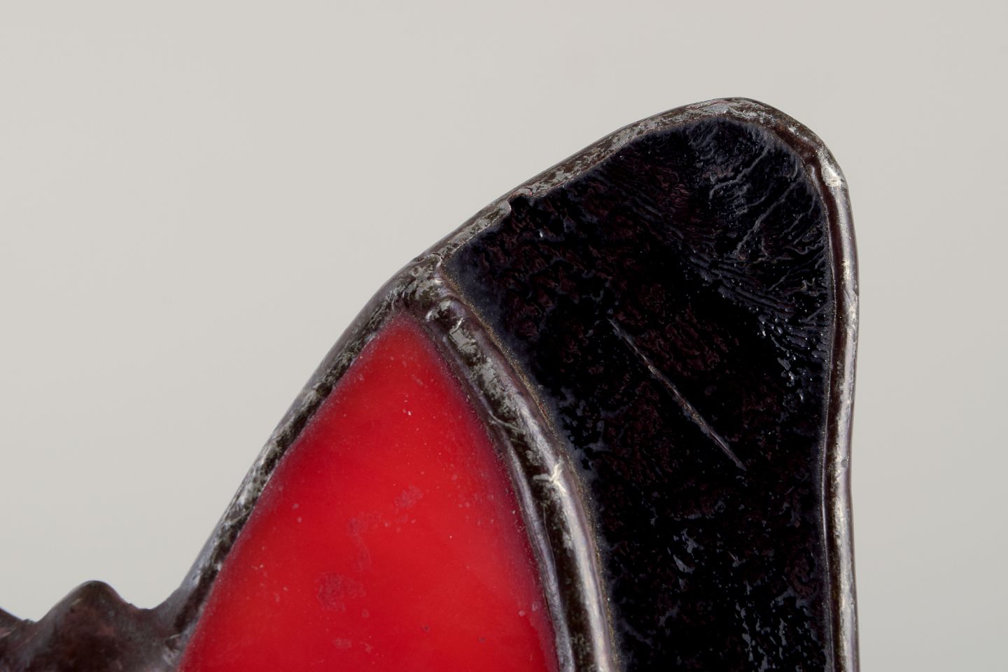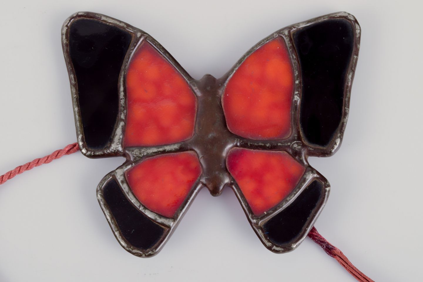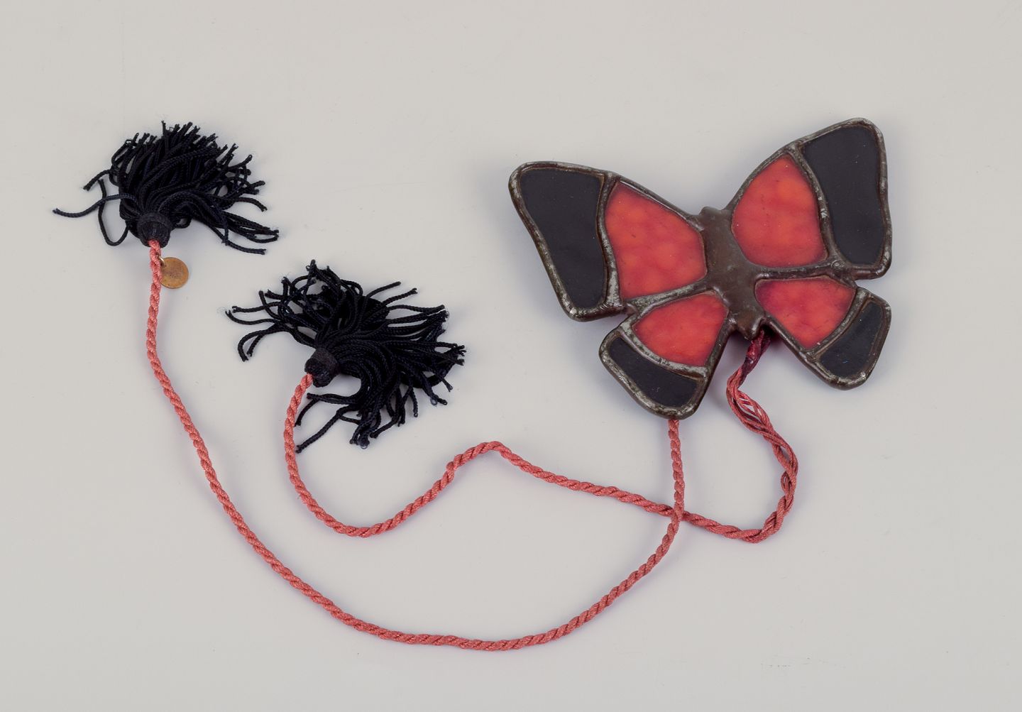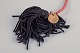 Yves Saint Laurent. Tidlig halskæde. Glas og støbejern. Vintage. Bomuldssnor med frynser. 1970’erne. Stemplet. I flot stand. Mål: B 11,0 cm. x H 9,0 cm. Snor: 64,0 cm.