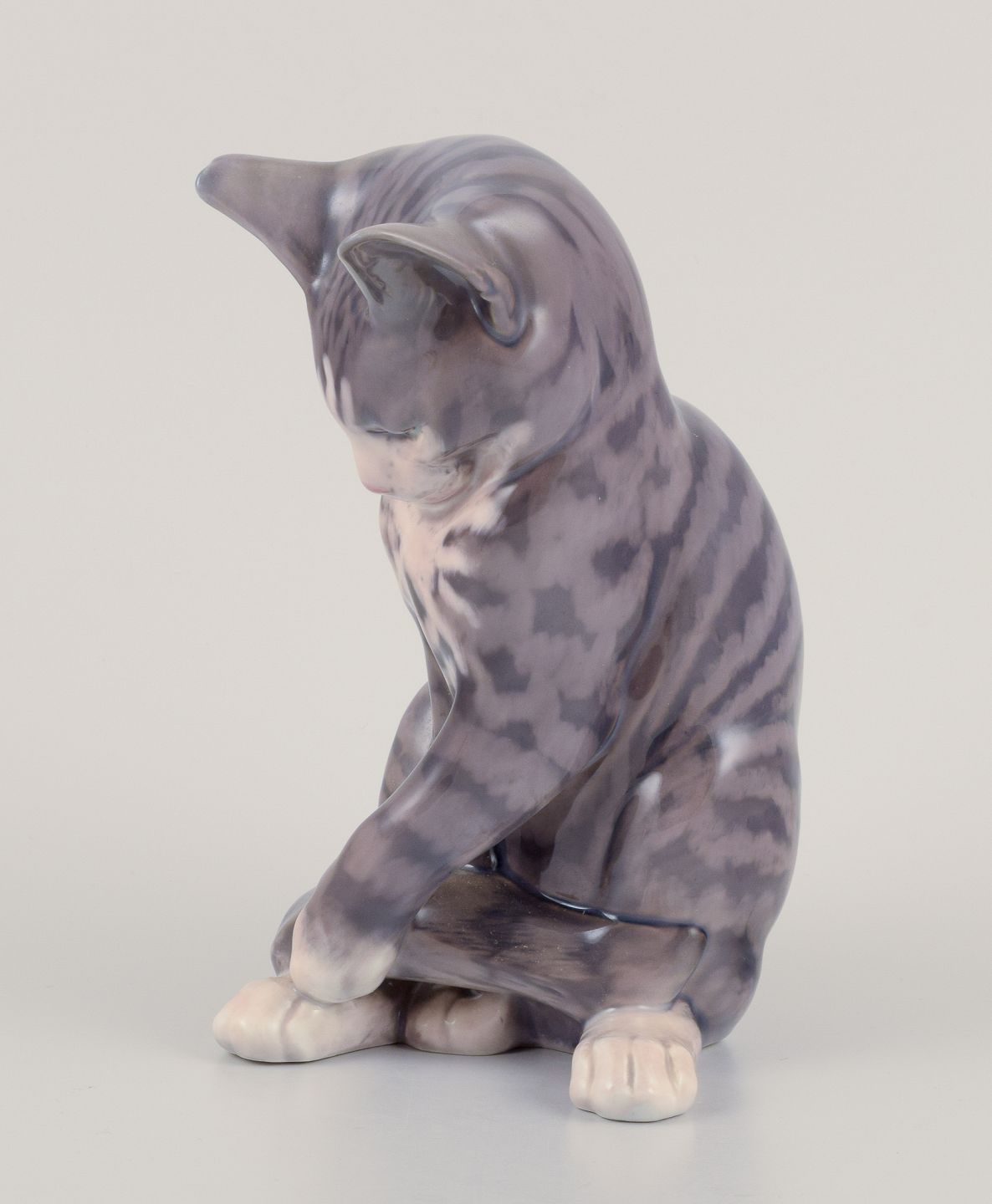 Erik Nielsen for Royal Copenhagen. Porcelain figurine of gray striped cat.