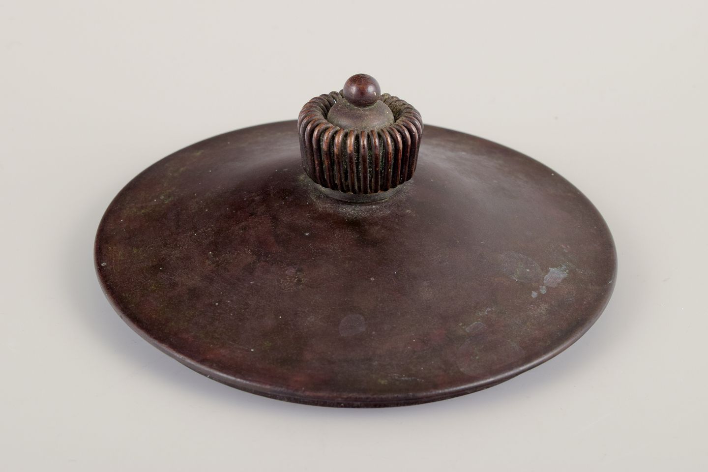 Låg af patineret metal.