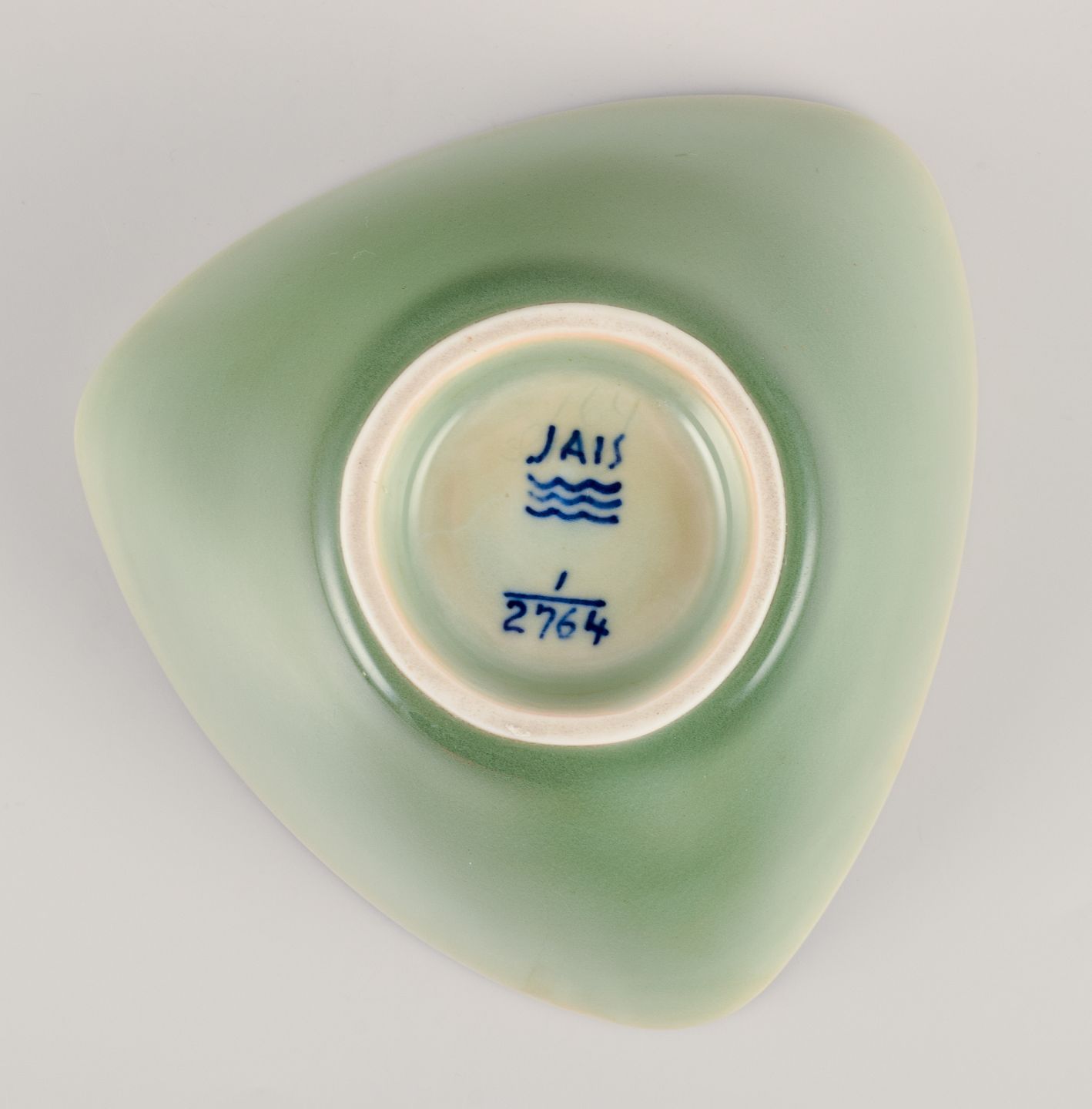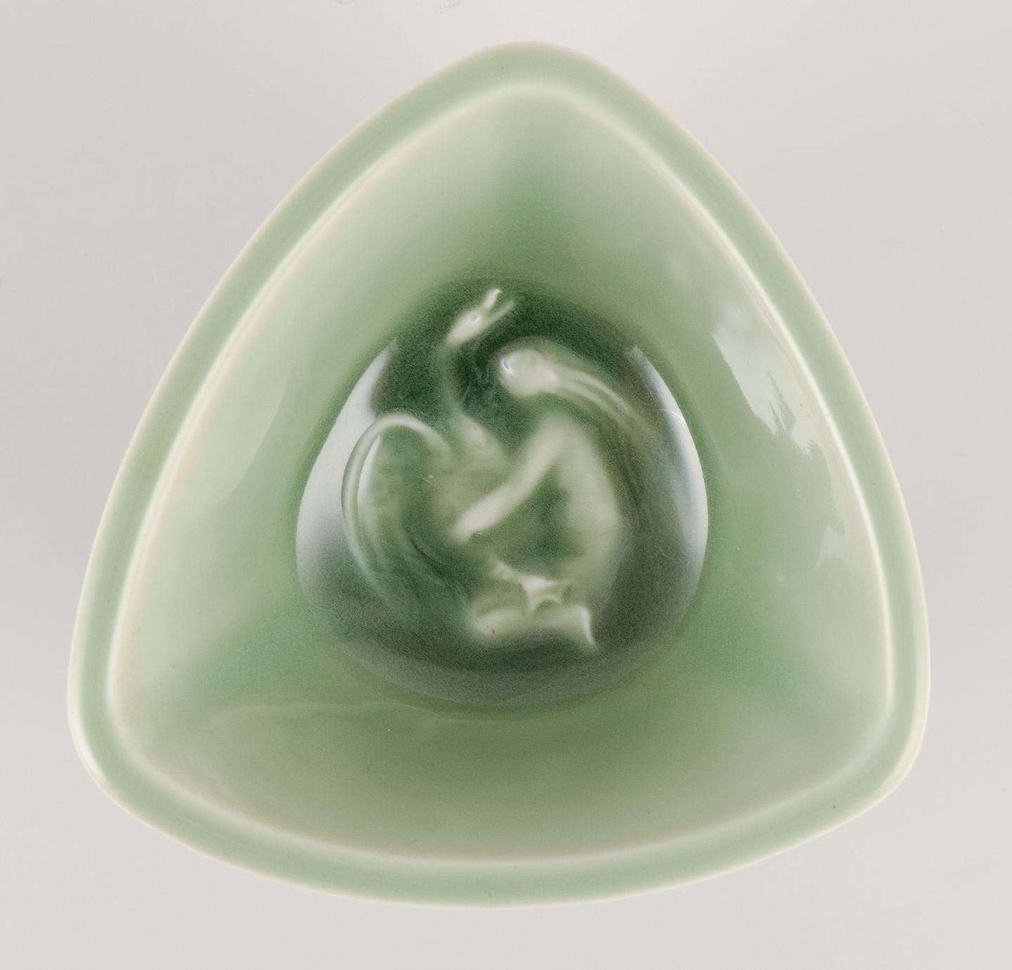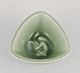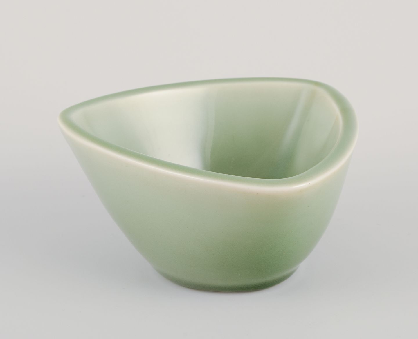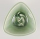 Trekantet skål i keramik med celadonglasur.