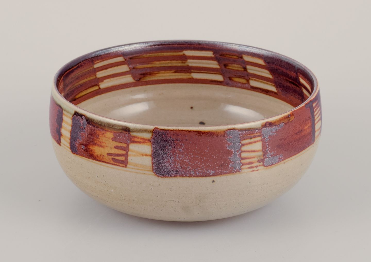 Hjort, Bornholm. Unique ceramic bowl. Glaze in brown and sand colored shades. Ca. 1970s. Marked and artist signature. Perfect condition. Dimensions: Diameter 13.0 cm. x Height 6.0 cm.