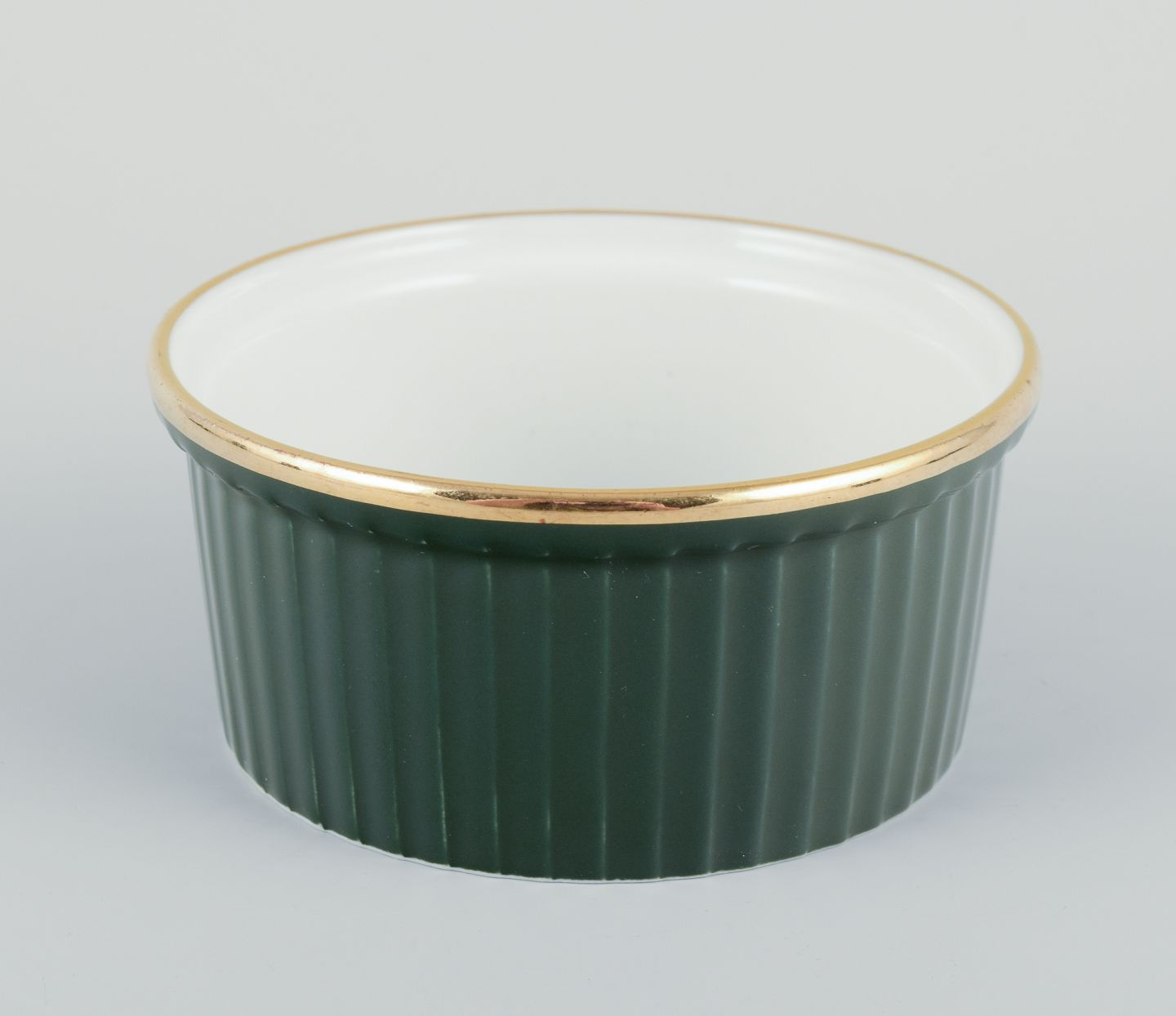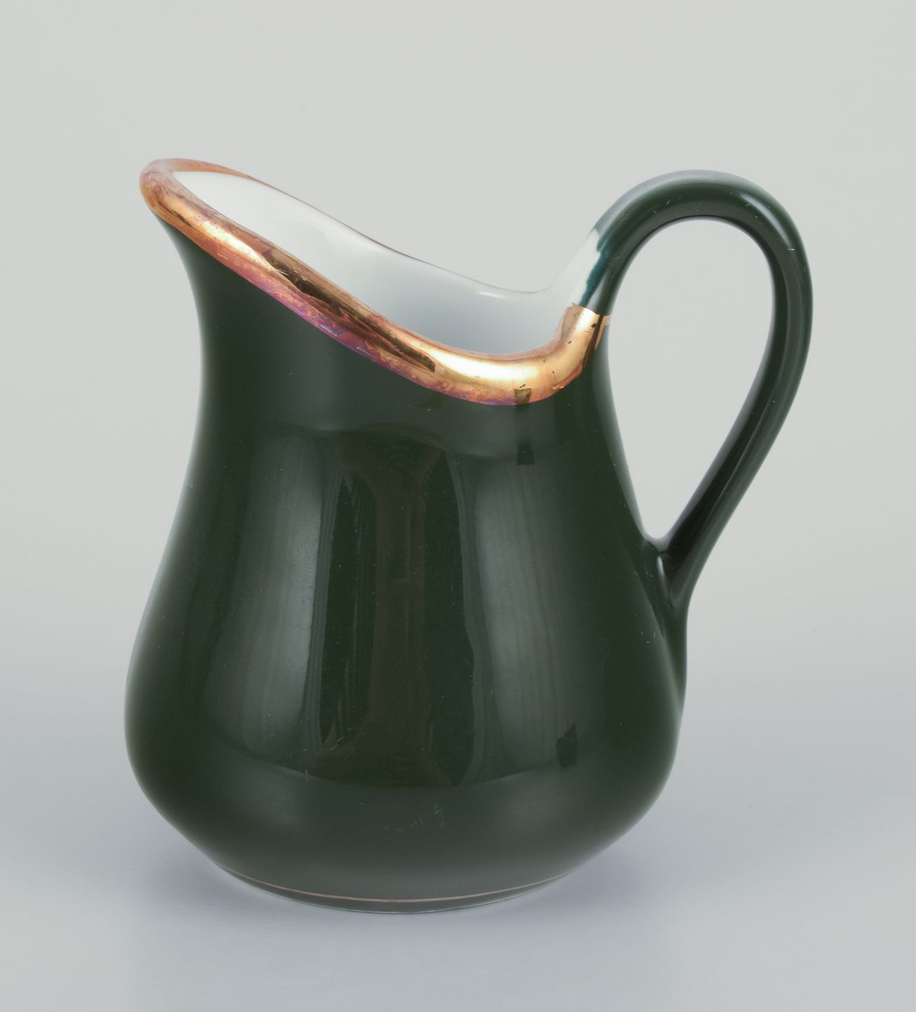 ”Grøn Bistro” porcelæn. Mørkegrøn glasur med gulddekoration.