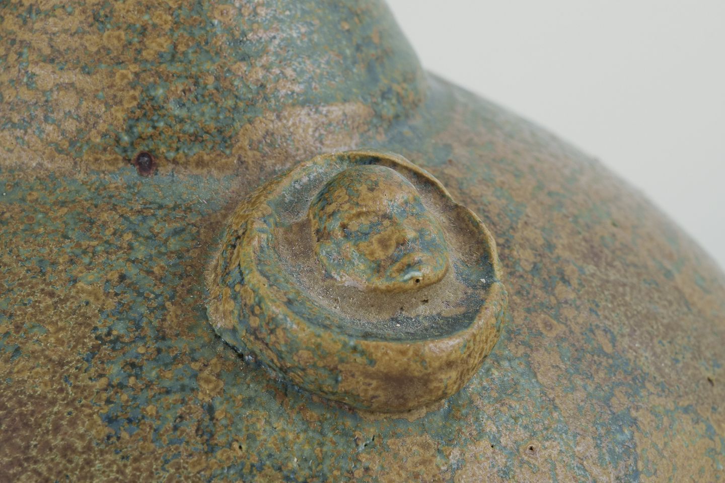 Rolf Fagerberg, (1934-2008). Svensk keramiker. Stor rund unika keramikvase. Glasur i grønne sandfarvede nuancer. Sent 1900-tallet. Signeret. Perfekt stand. Mål: H 25,0 cm. x D 19,0 cm.