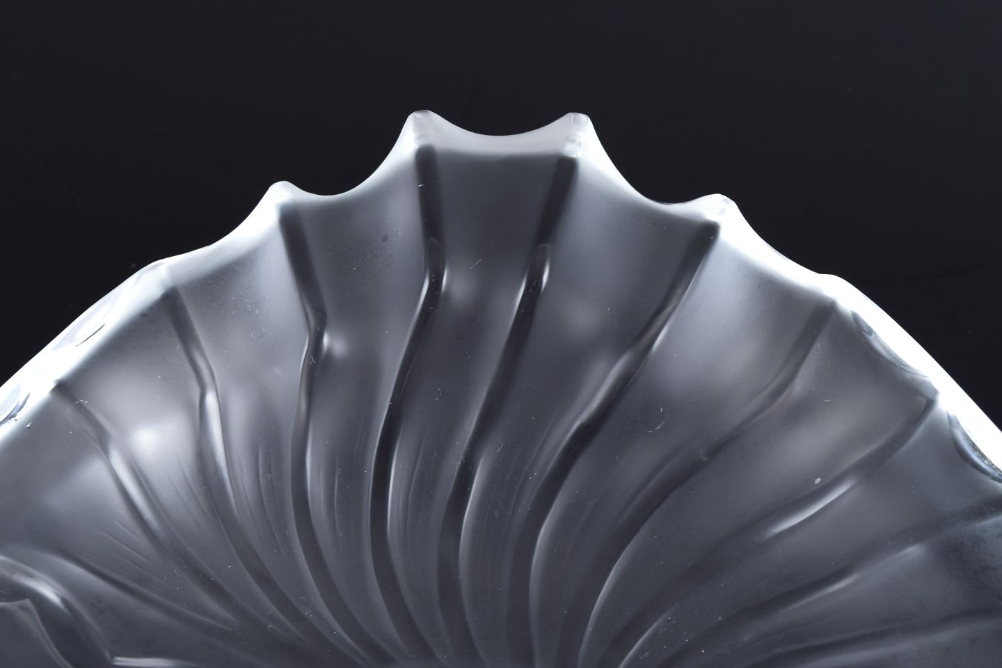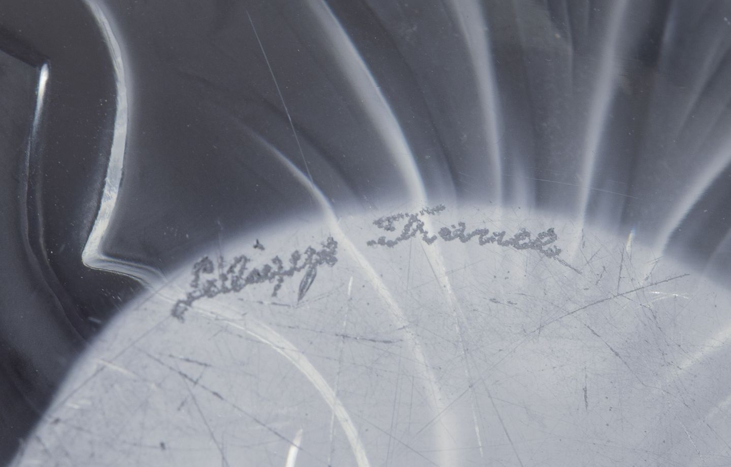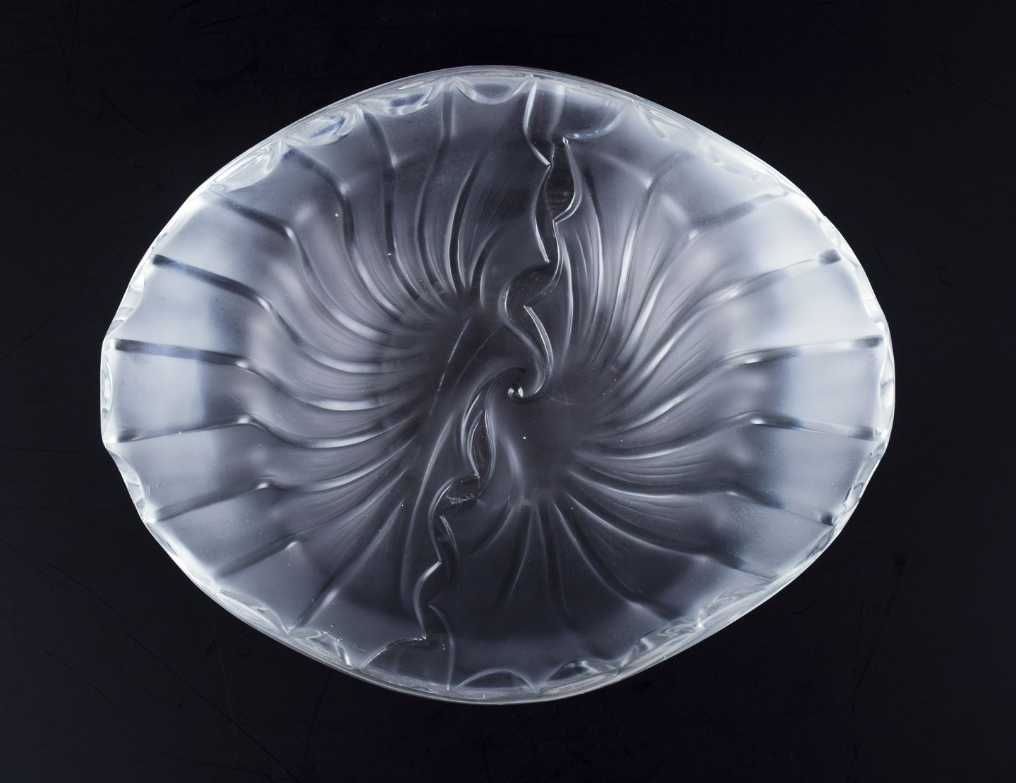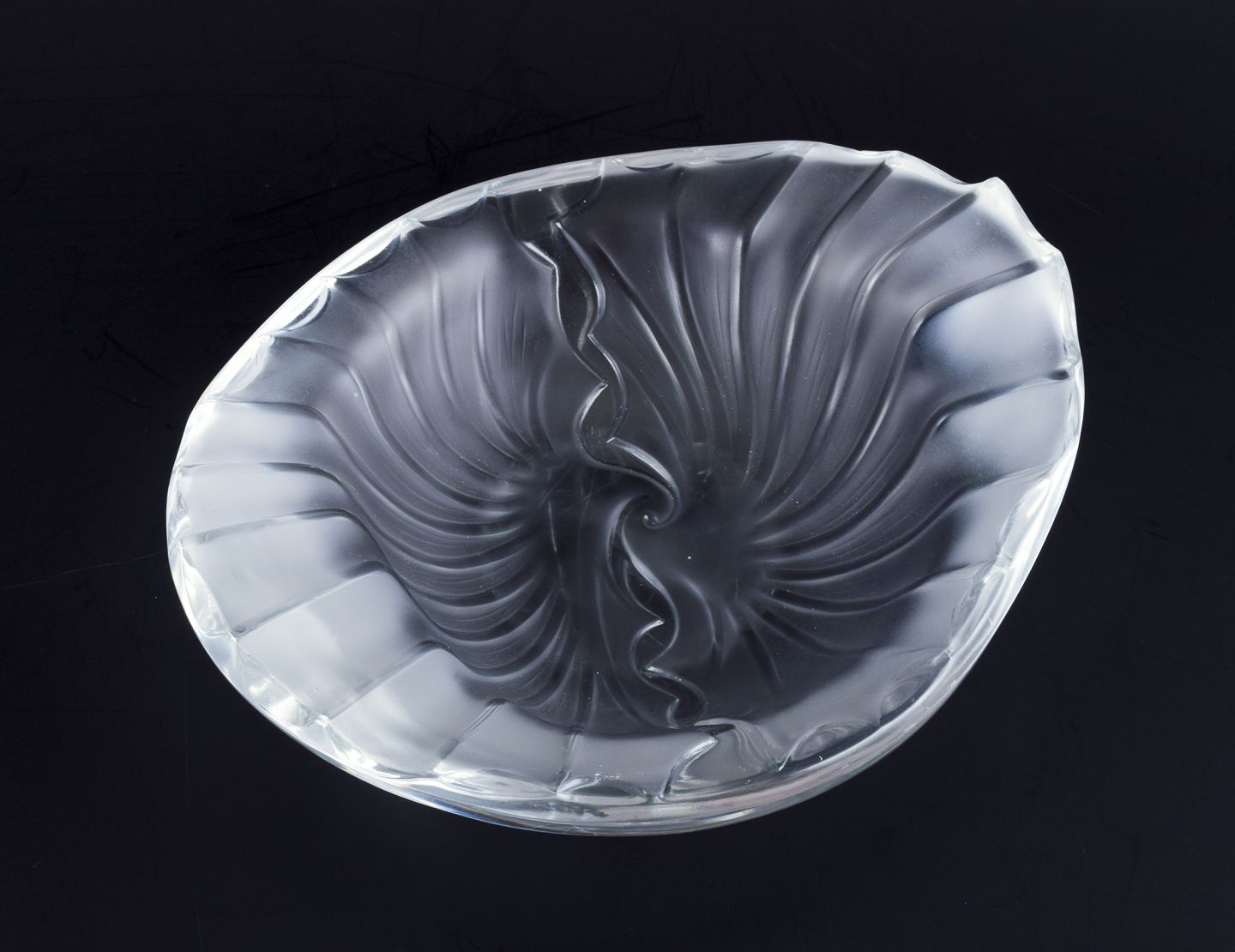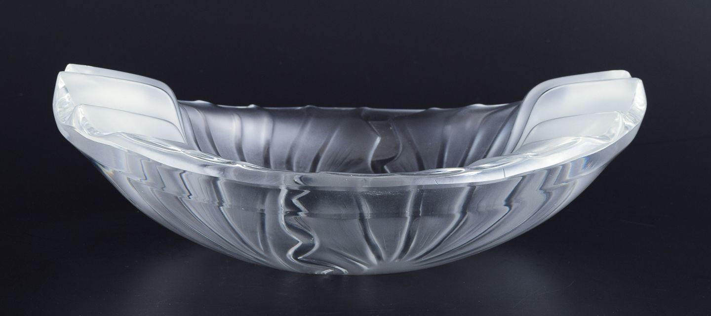 Lalique, Frankrig. Skål af kunstglas med reliefdekoration. 1980’erne. Signeret Lalique France. Perfekt stand. Mål: B 21,0 cm. x D 18,0 cm. x H 6,8 cm.