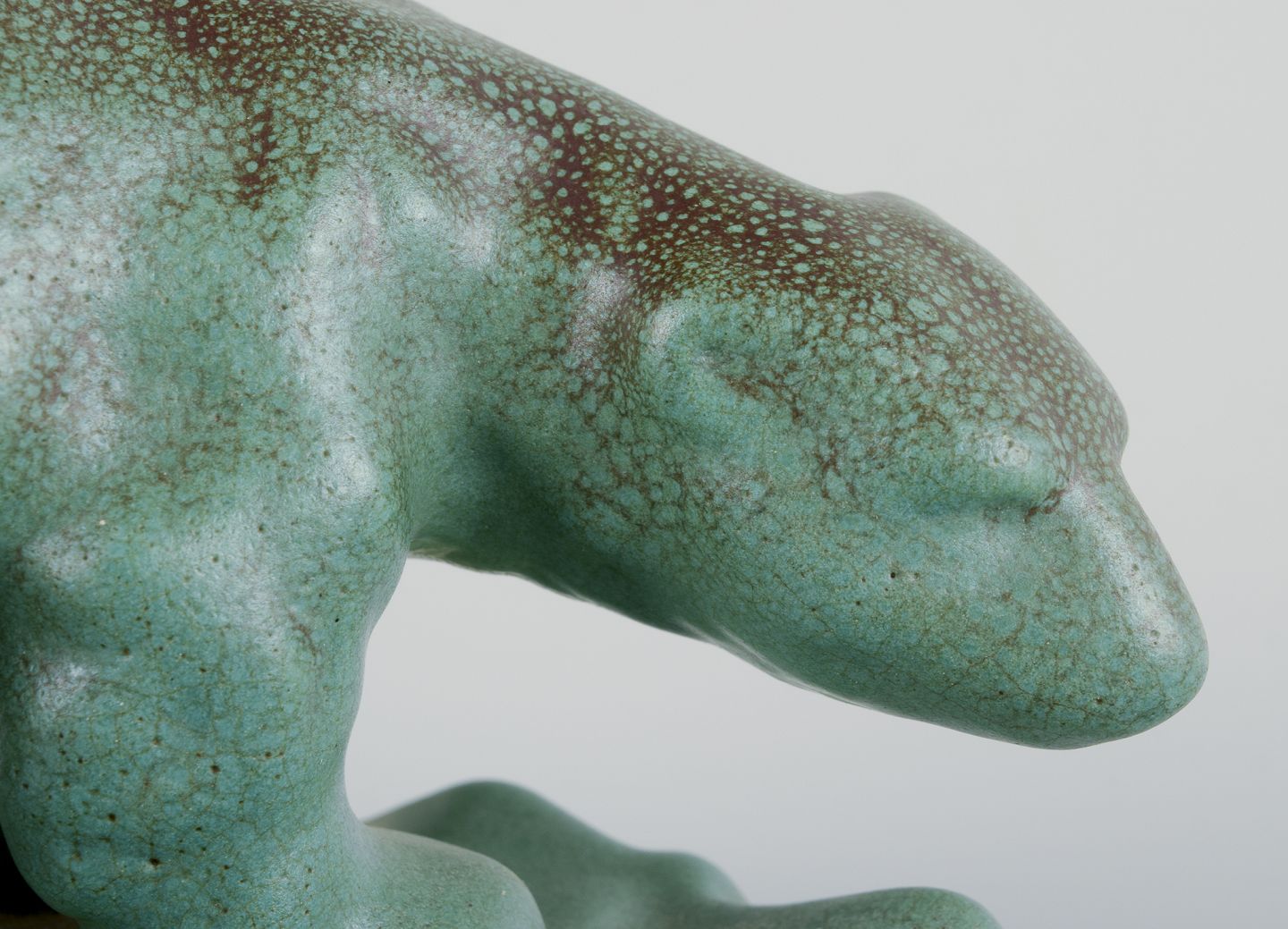 Michael Andersen (1859-1931), Bornholm. Fad med gående isbjørn. Glasur i brune og grønne nuancer. Model: 4055 Midt 1900-tallet. Stemplet. Perfekt stand. Mål: B 14,0 cm. x H 8,5 cm.