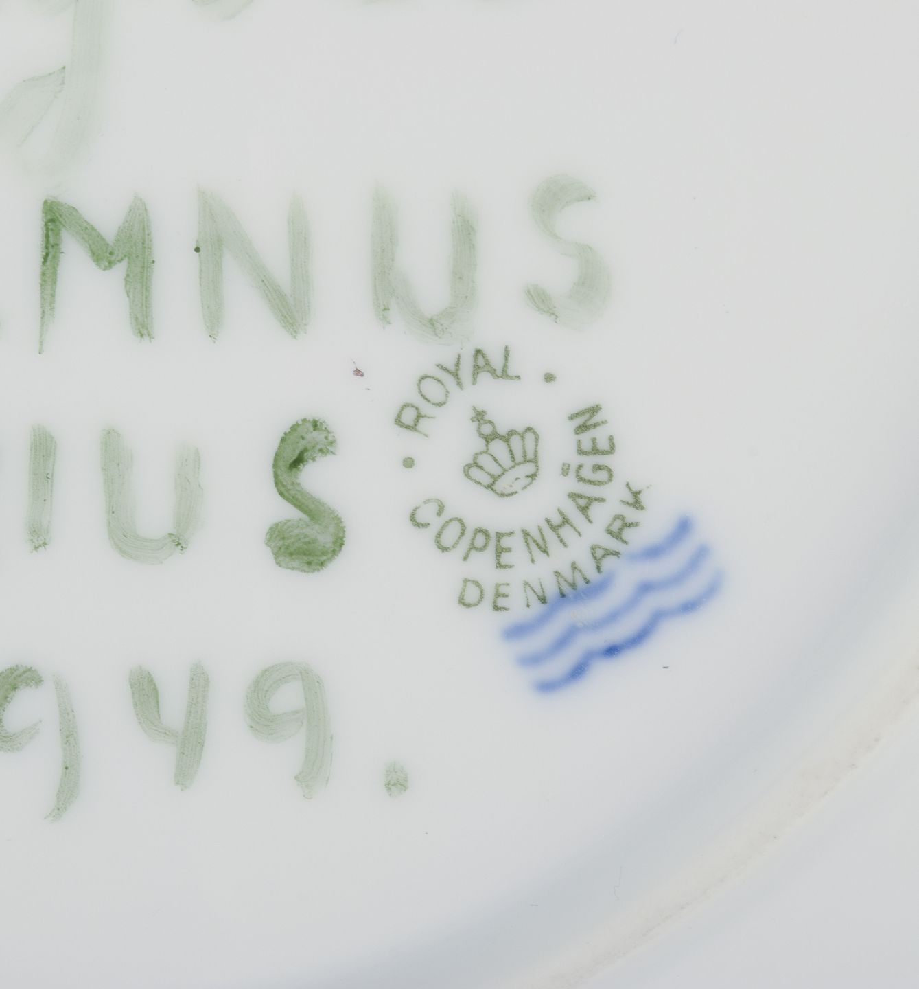 Royal Copenhagen Flora Danica. Frokosttallerken i håndmalet porcelæn med blomster og gulddekoration.