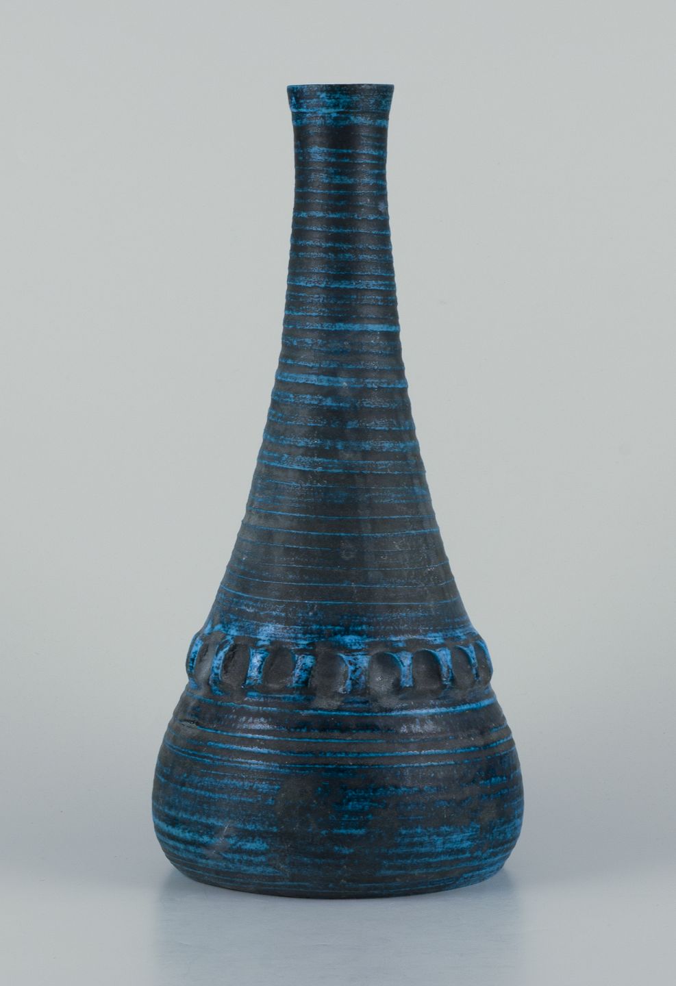 Modernistisk stil. Azurblå glasur. Smalhalset.