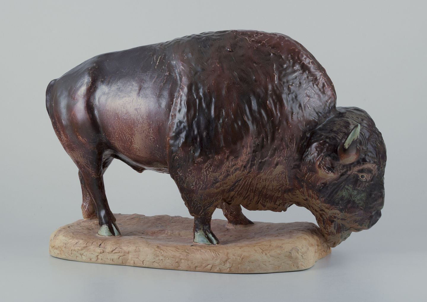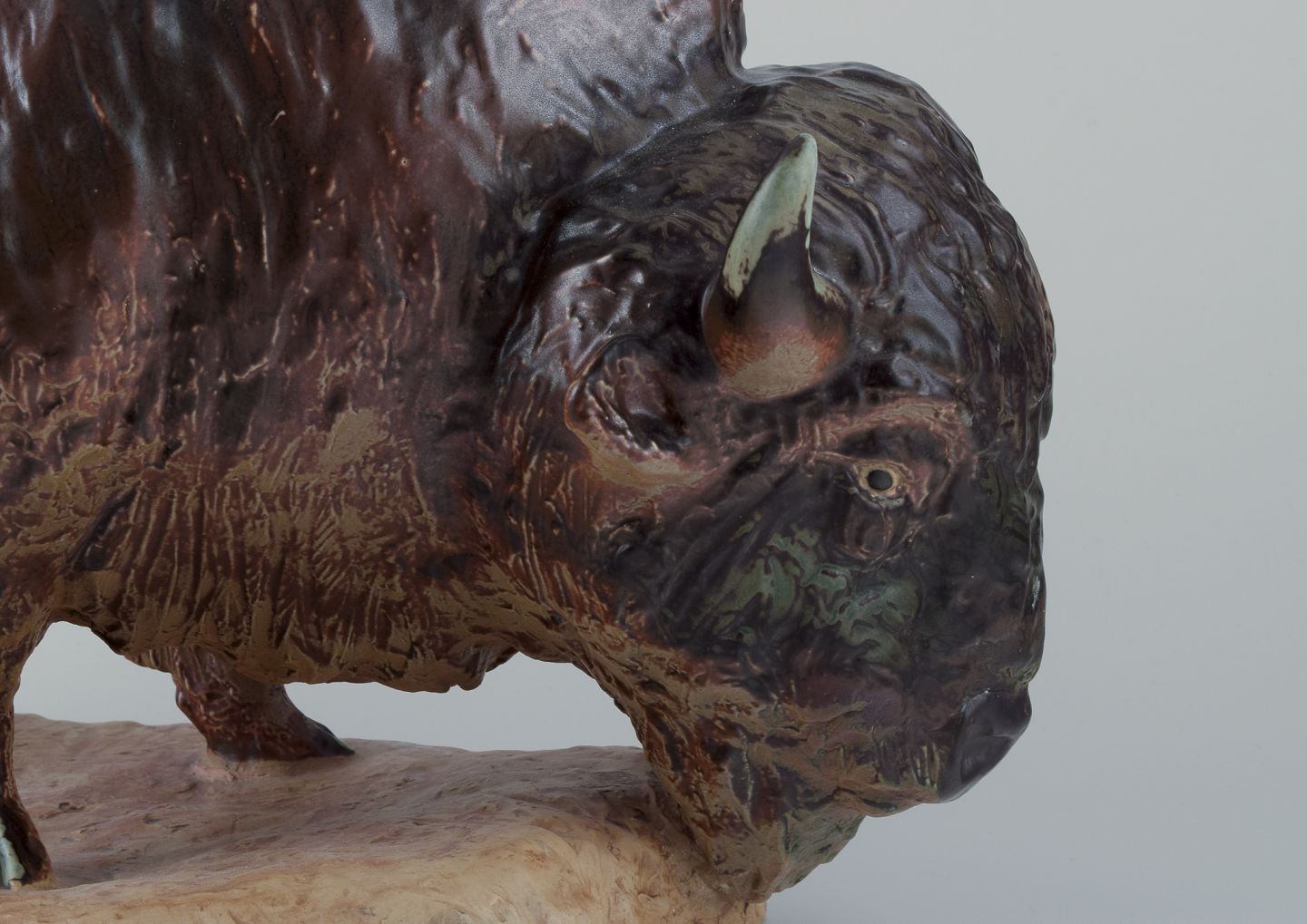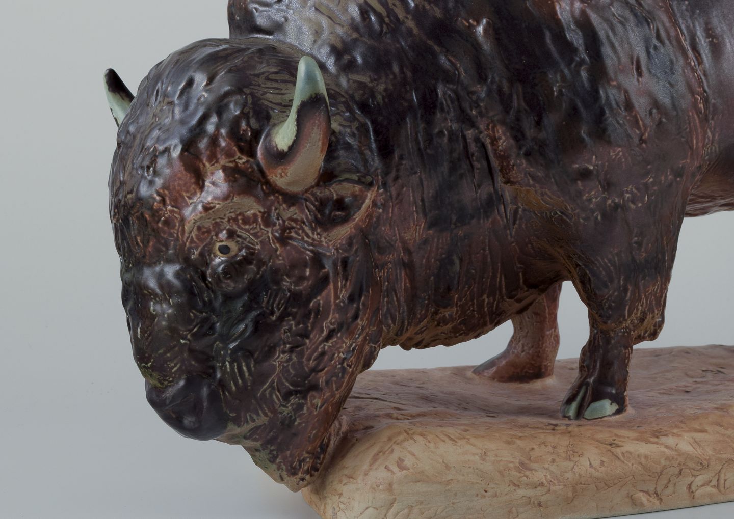 Kolossal og sjælden bisonokse i glaseret stentøj.