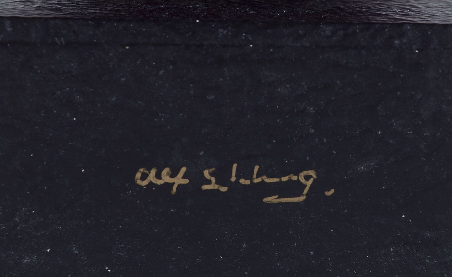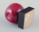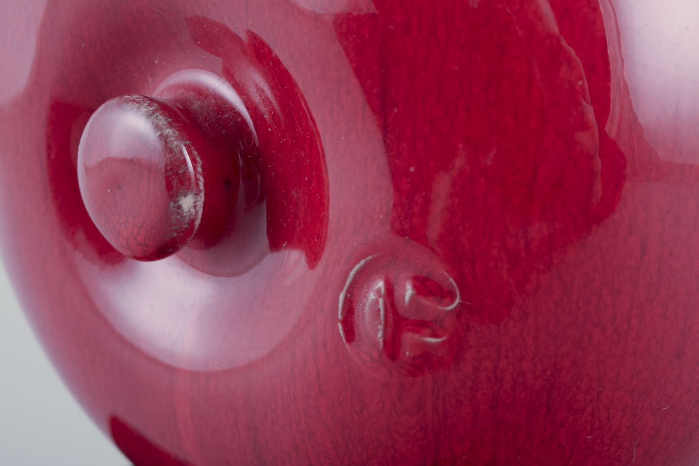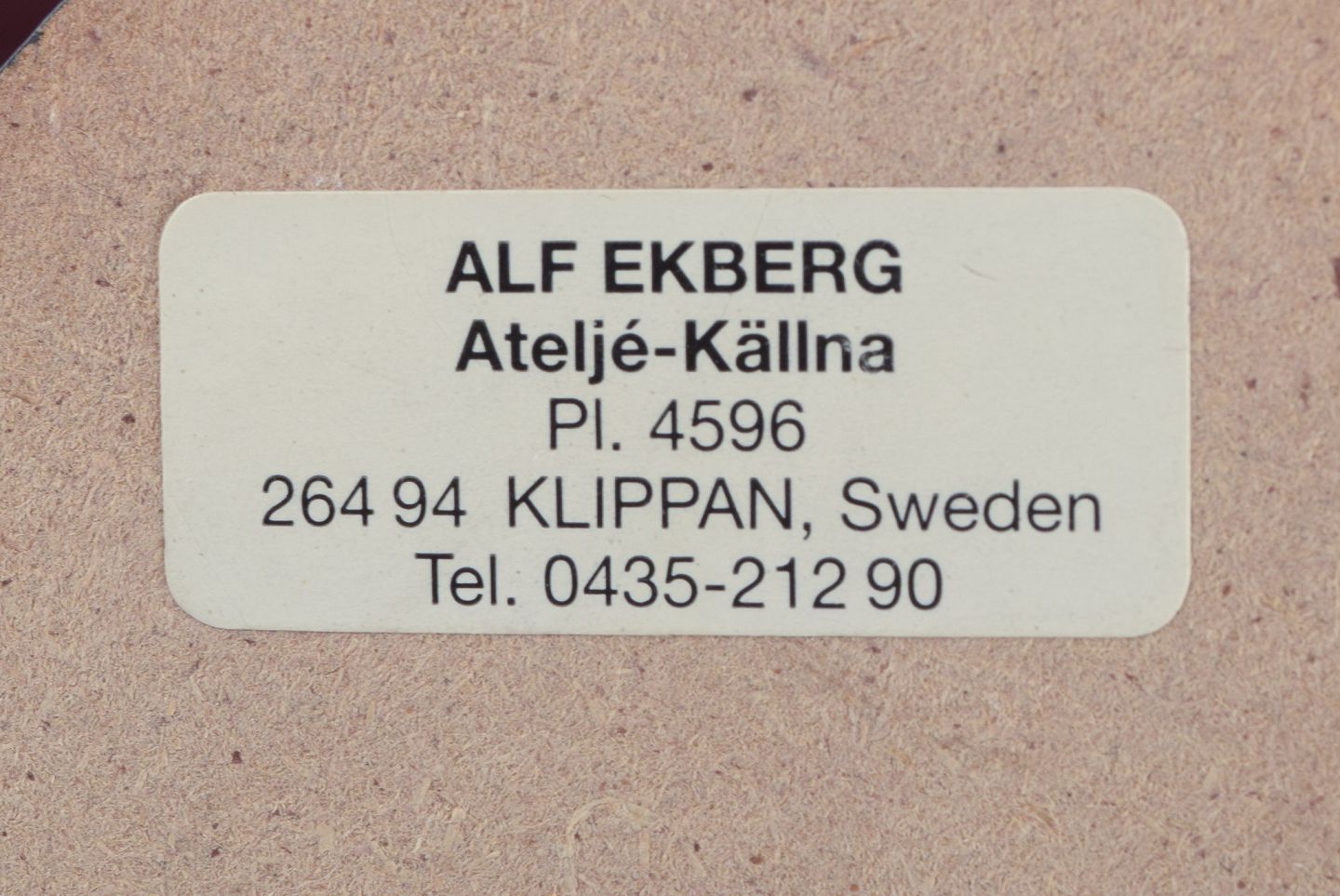 Alf Ekberg, svensk keramiker. Eget atelier. Keramik-æble på træsokkel. Unika Håndglaseret i mørkerød glasur. Datering: 1980/90’erne. Signeret samt mærkat. Perfekt stand. Mål: H 16,0 cm. x B 11,0 cm.