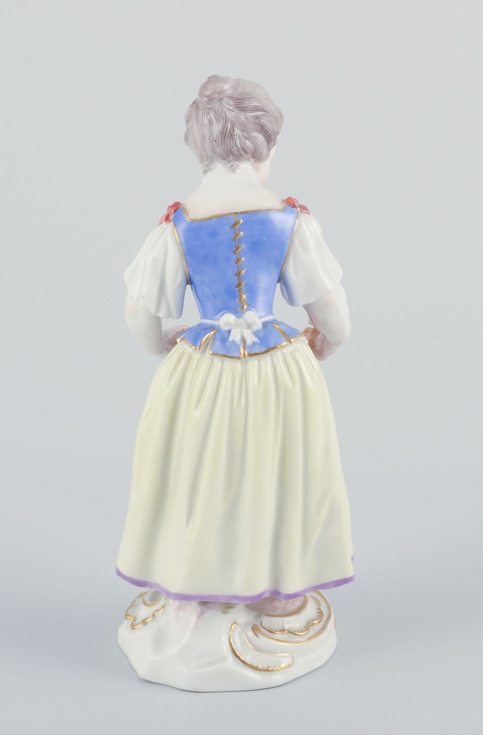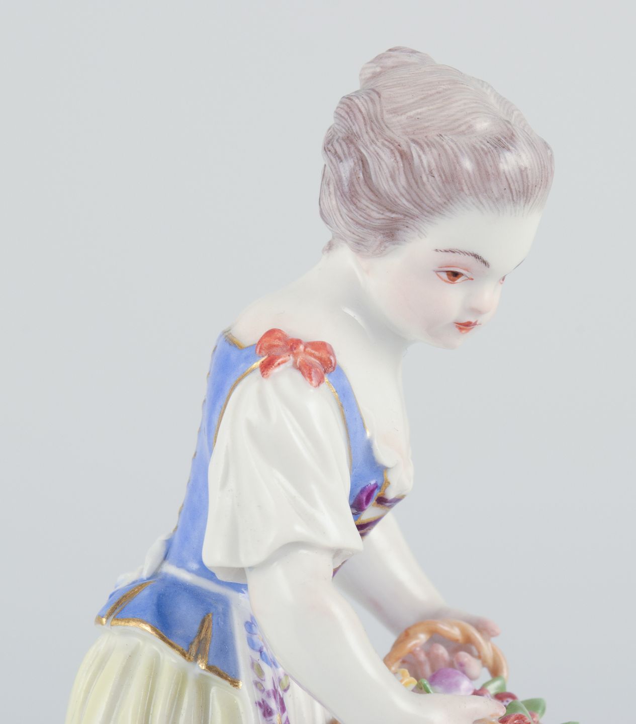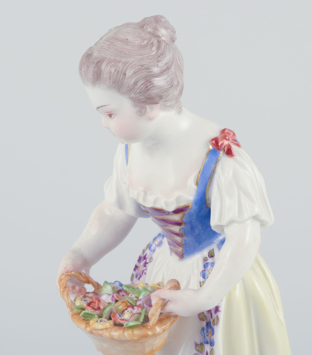 Meissen, Tyskland. Porcelænsfigur af pige med kurv.