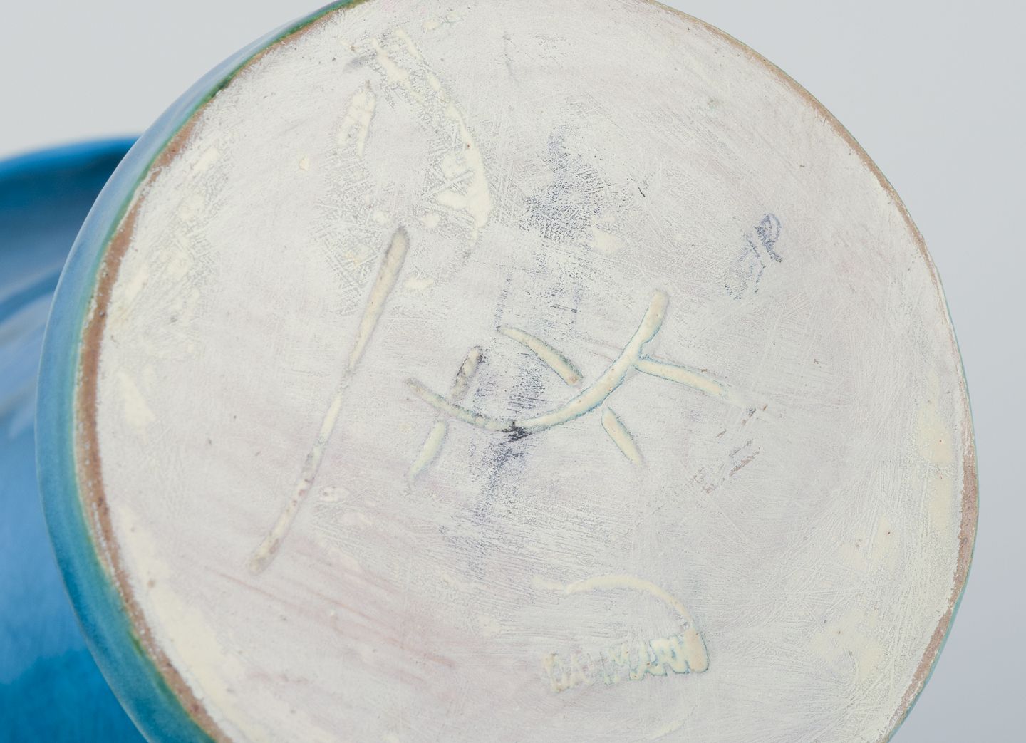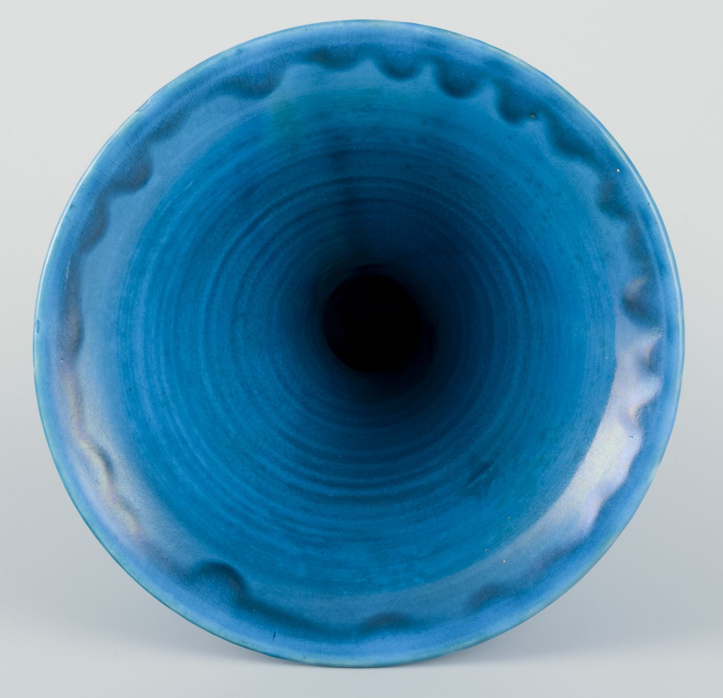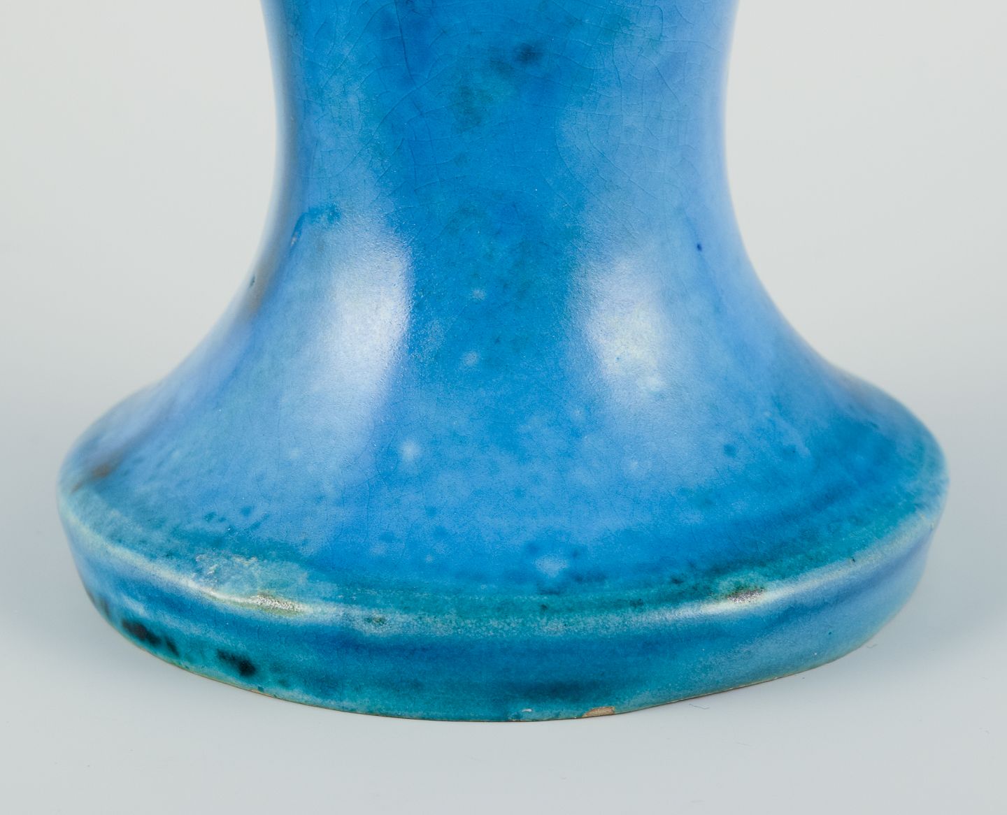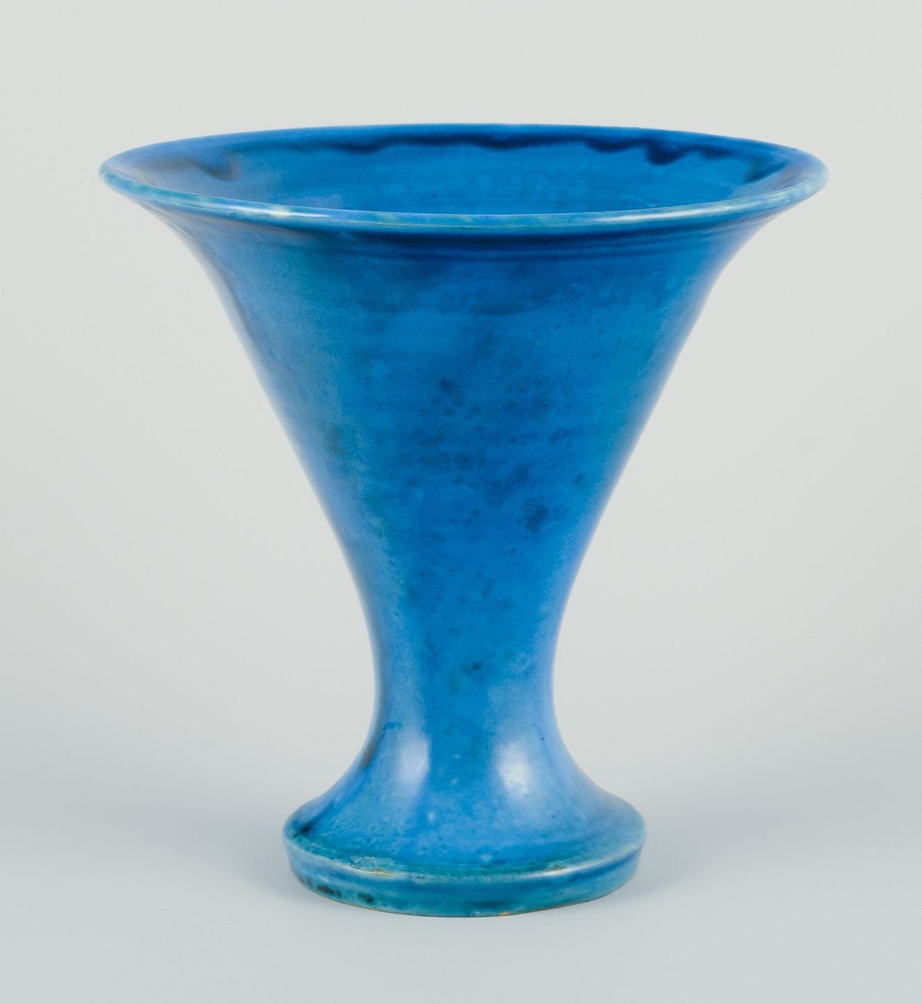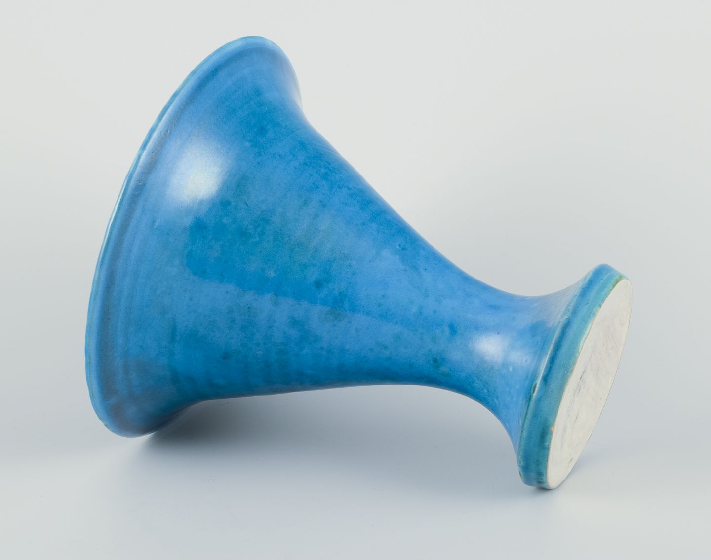 Trompetformet keramikvase, turkis glasur.