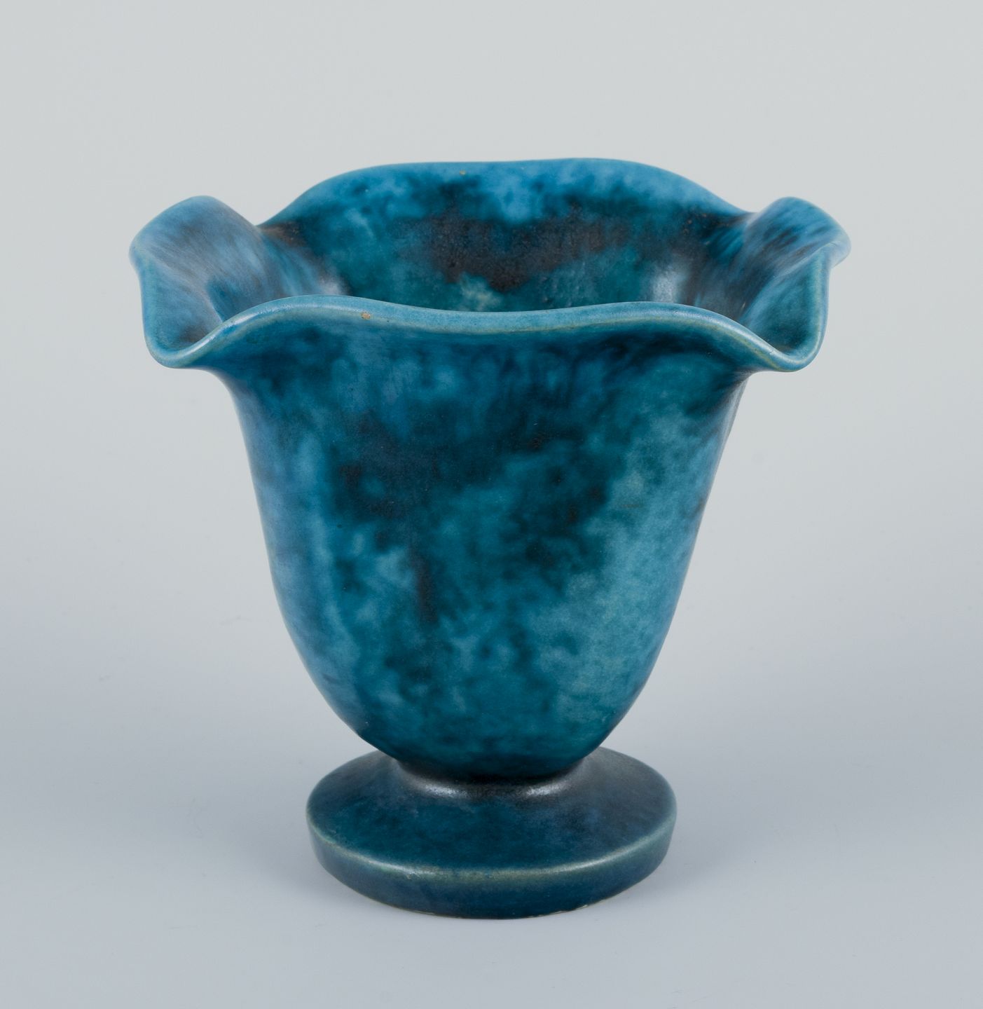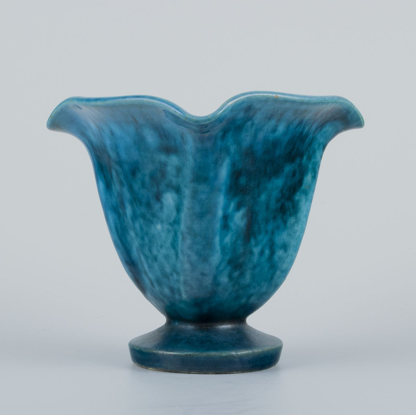 Svend Hammershøi for Kähler, Denmark. Small ceramic vase with organic shape. Turquoise glaze. Handmade. Circa 1930s. In excellent condition. Marked. Dimensions: H 13,0 cm. x D 13,0 cm.