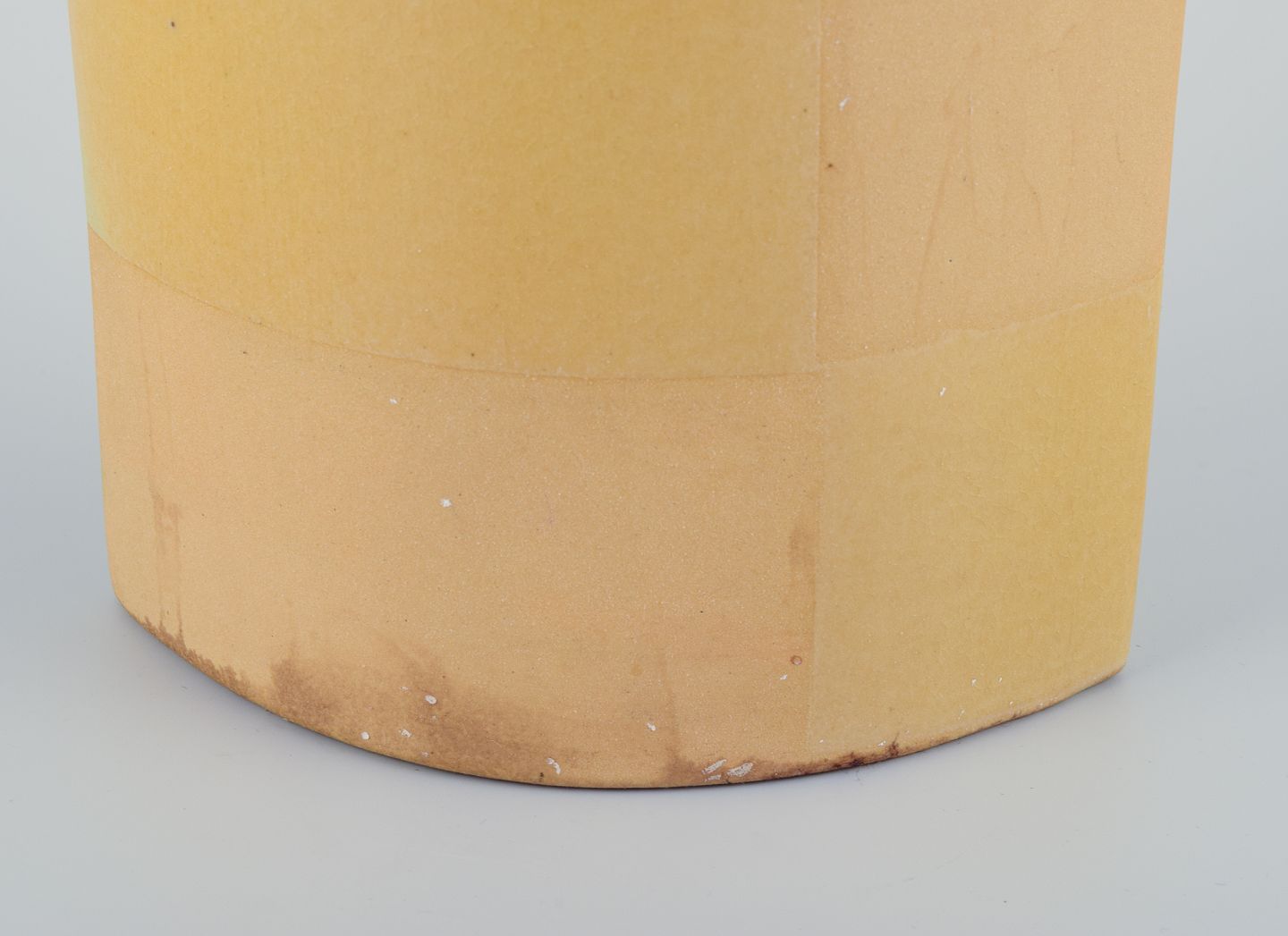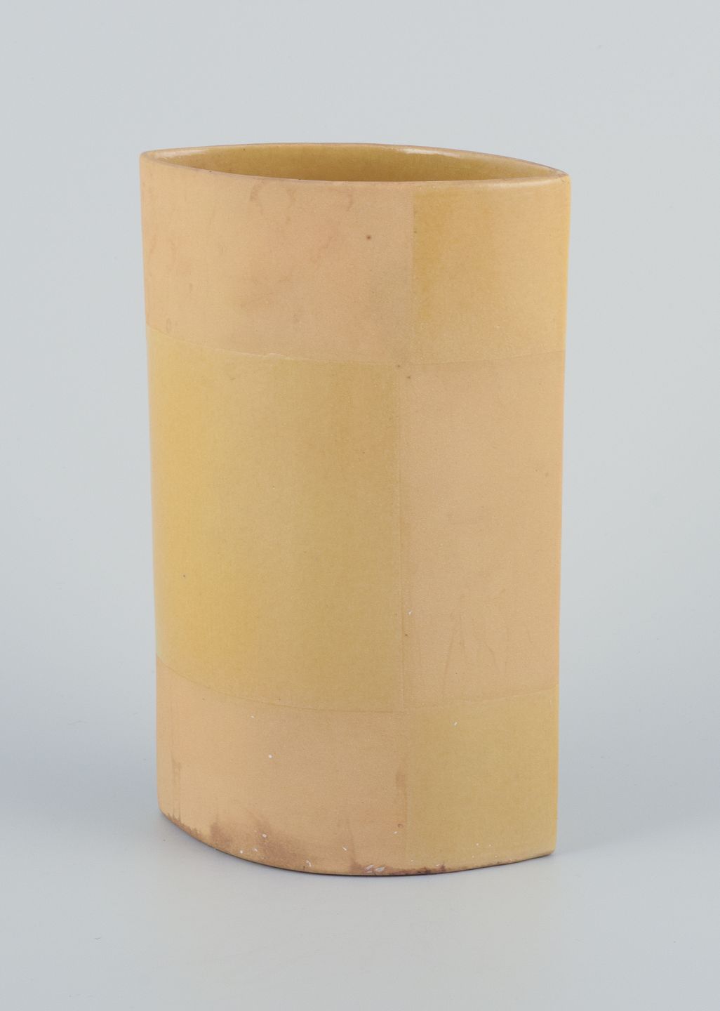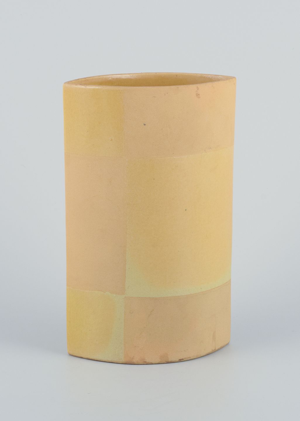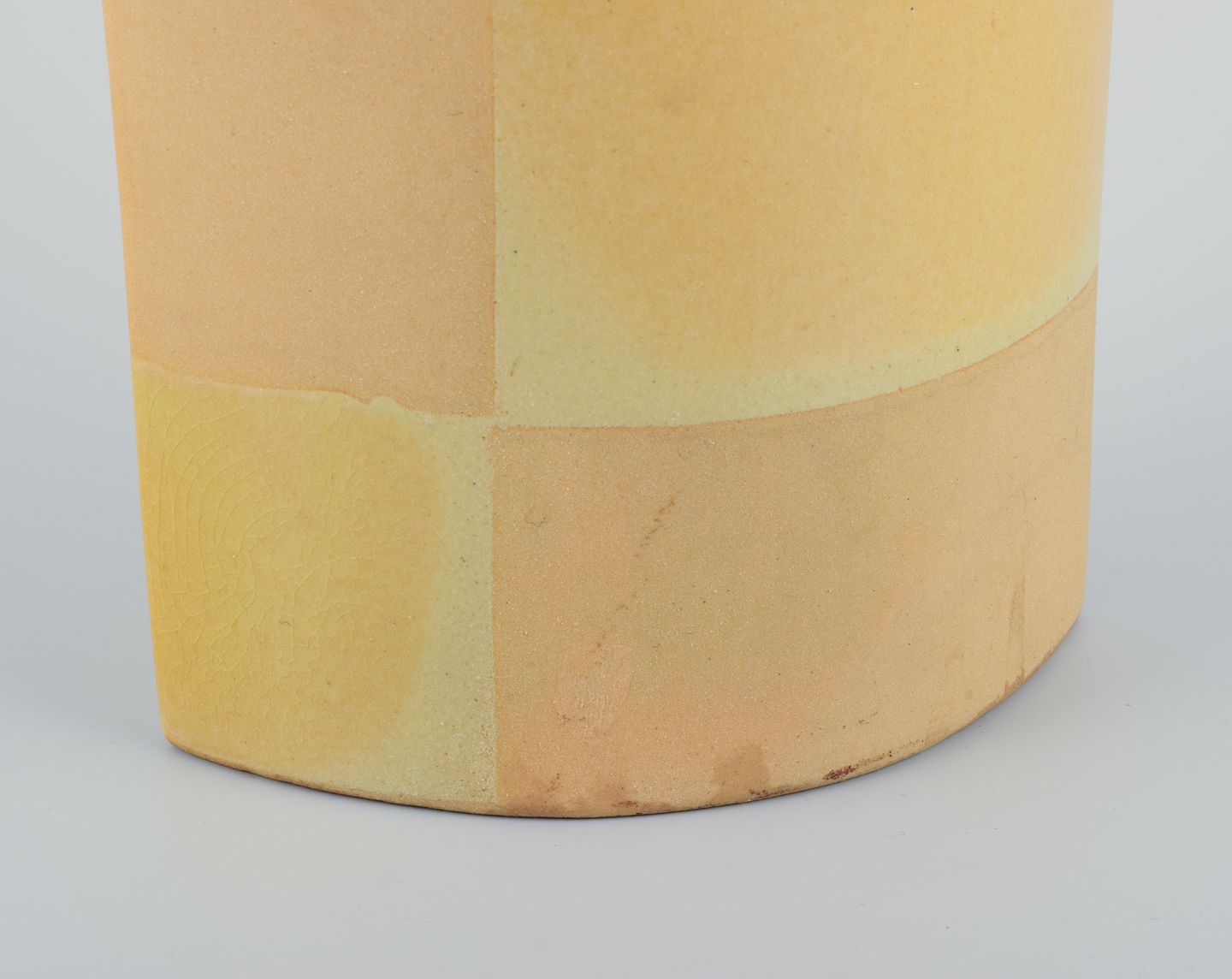 Europæisk studiokeramiker. Unika keramikvase. Gul glasur i felter. Glaseret samt uglaseret. Ca. 1980’erne. Utydelig kunstnersignatur. Perfekt stand. Mål: H 21,0 cm. x B 13,5 cm. x D 7,5 cm.
