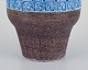Stor vase i Rimini-blå glaseret keramik med geometriske mønstre.