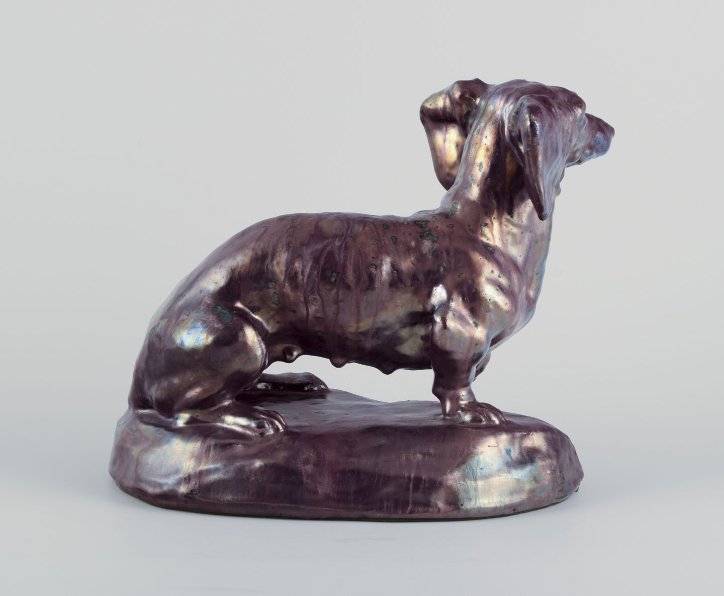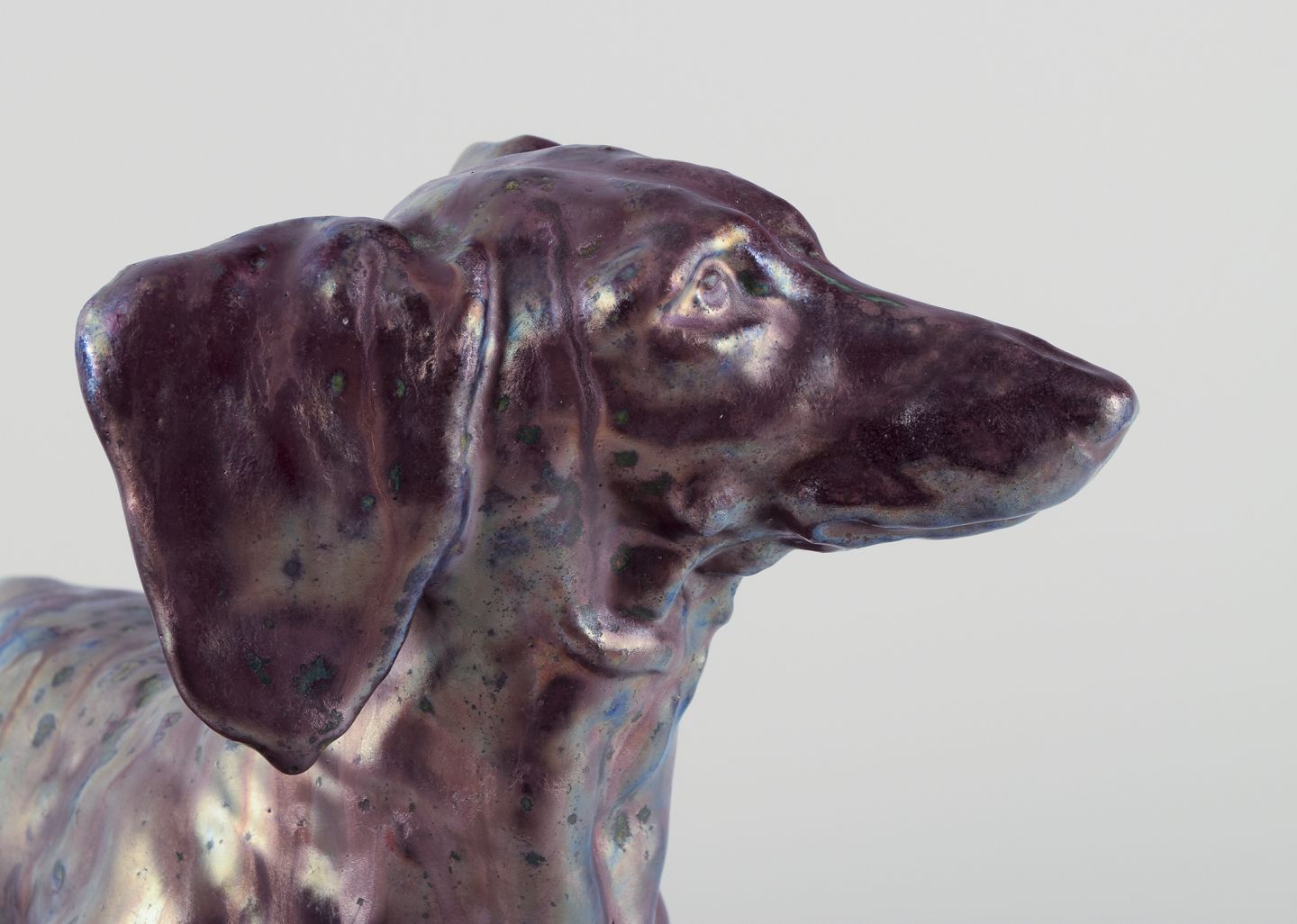 Stor skulptur af gravhund i lustreglasur. Unika.