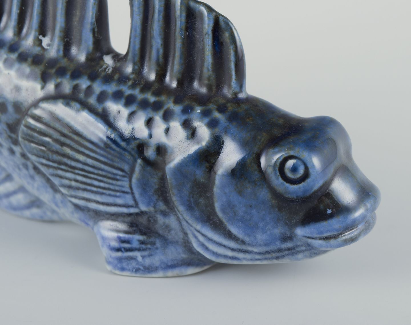 Sven Wejsfelt (1930-2009) for Gustavsberg. Unika Stim fisk i glaseret keramik. Fjæsing. Datering: 1980'erne. I flot stand. Stemplet. Mål: L 14,0 cm. x H 9,0 cm.