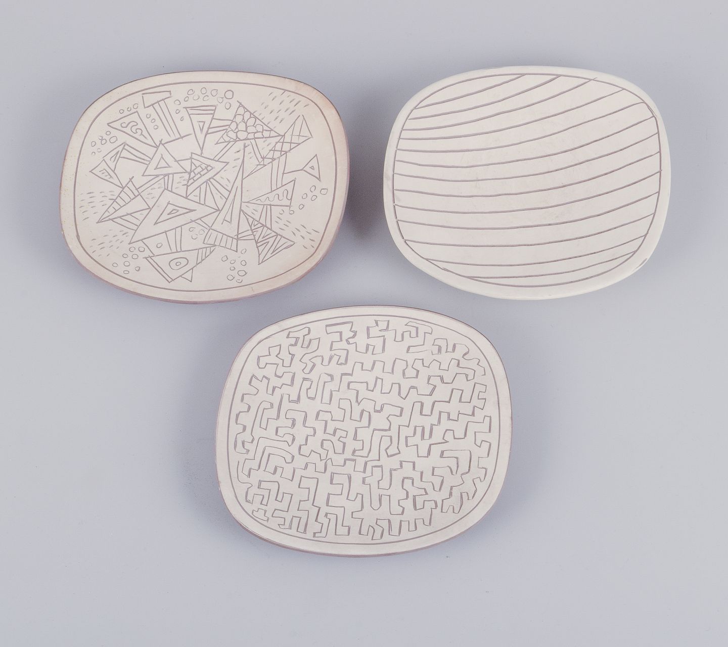 Tre unika fade af lertøj.