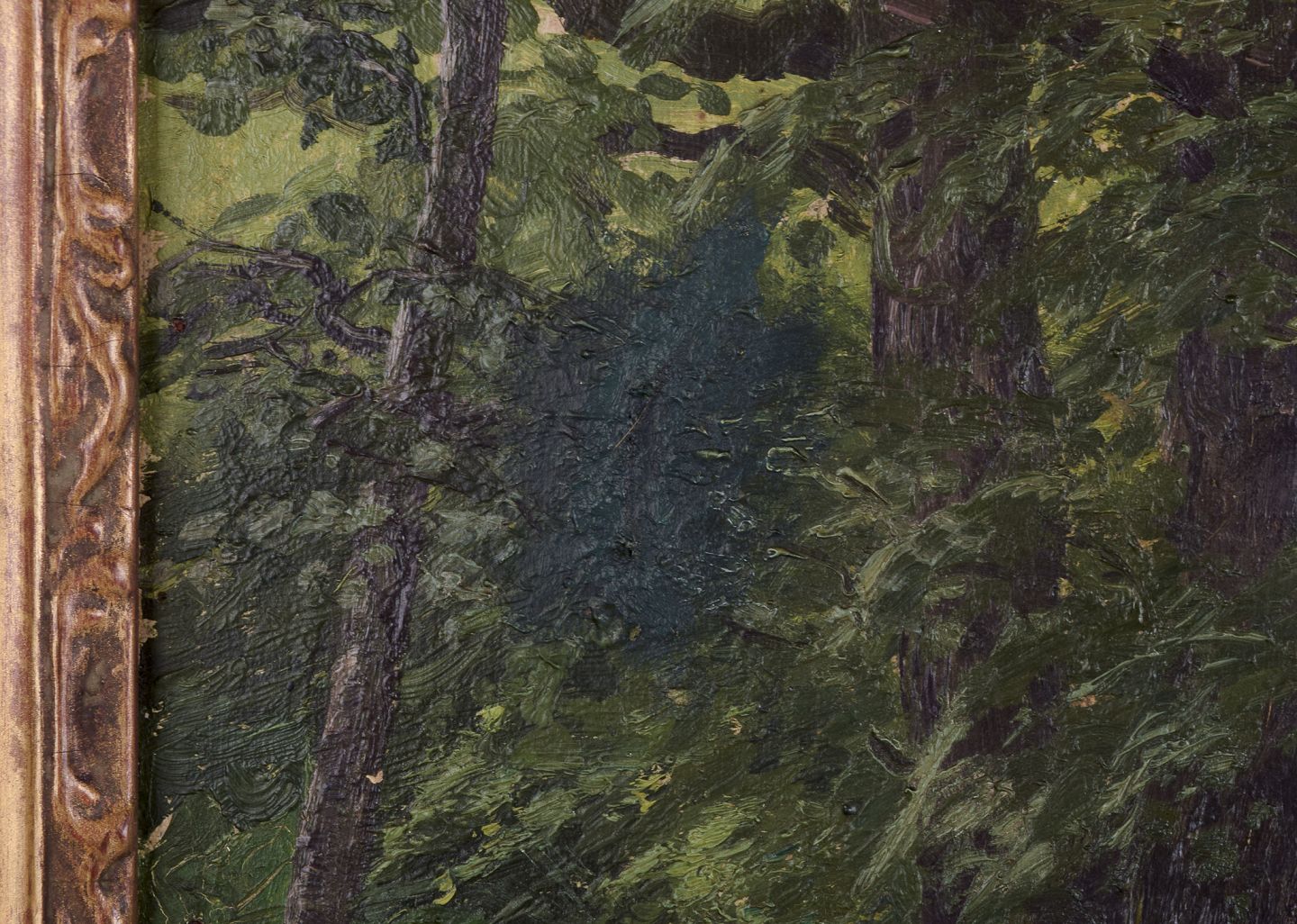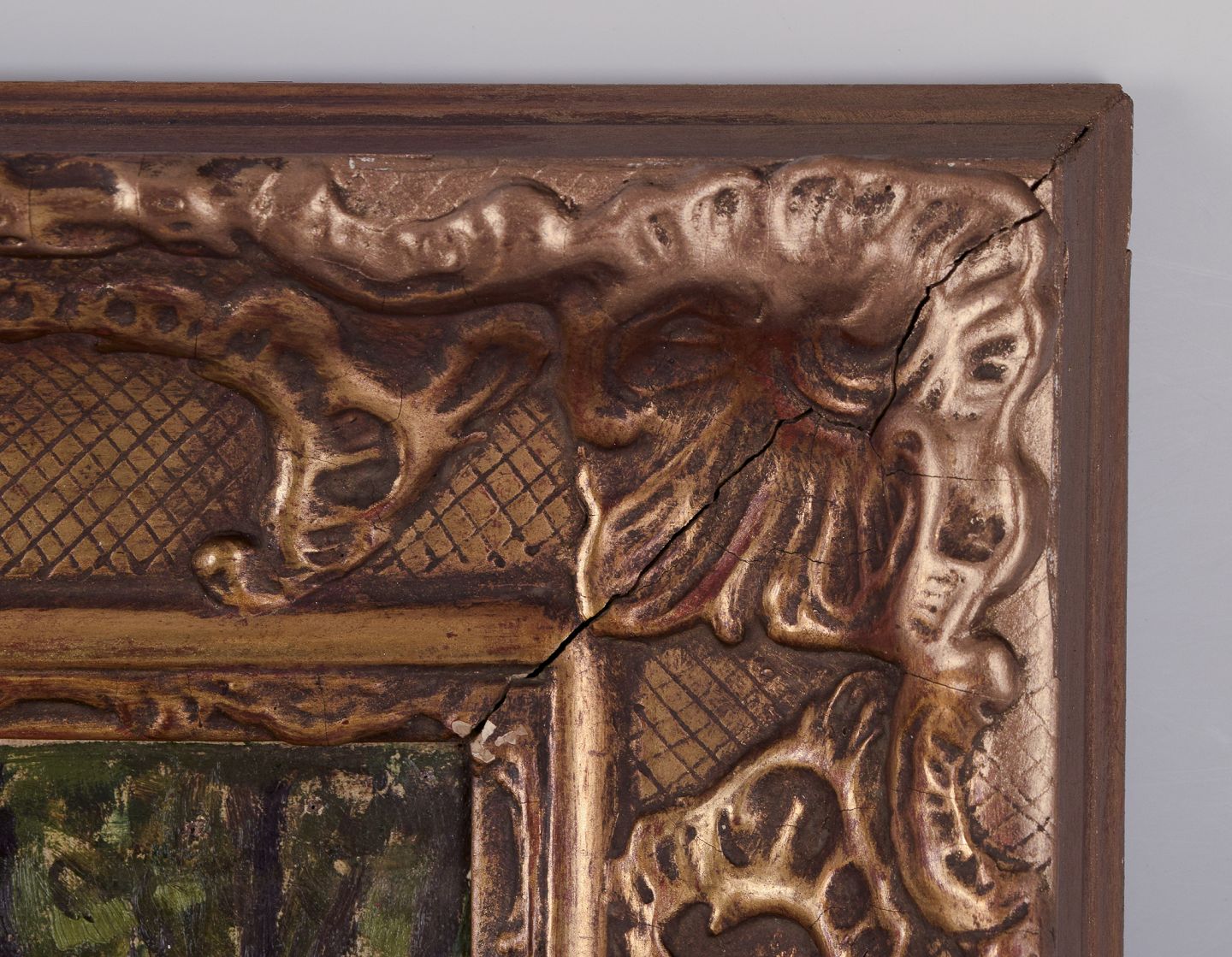 I flot stand, ældre restaurering i venstre del af maleriet. Se foto.