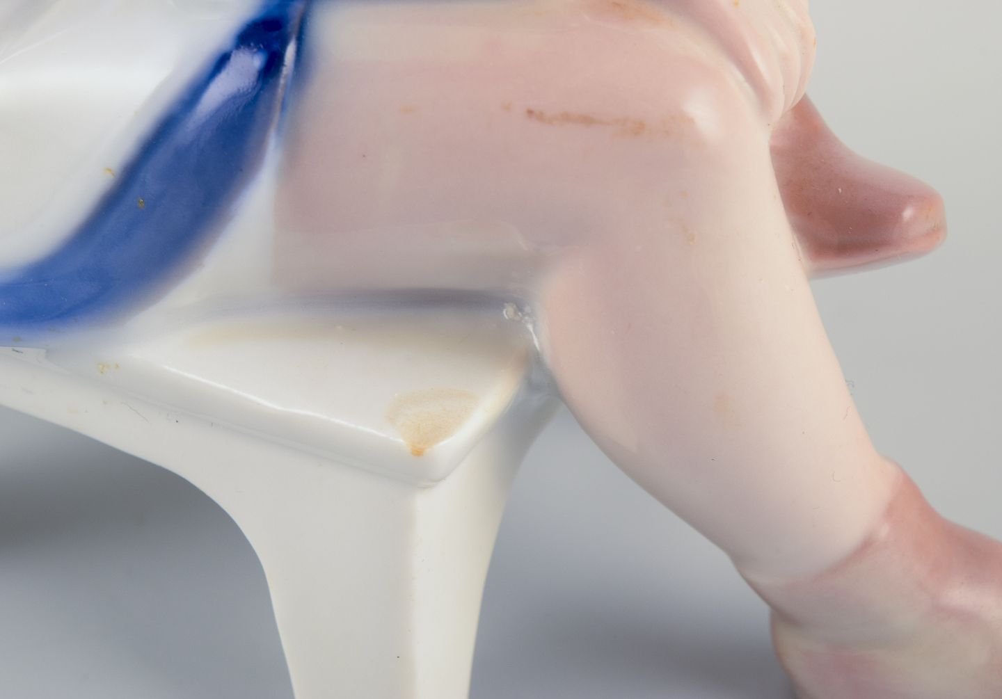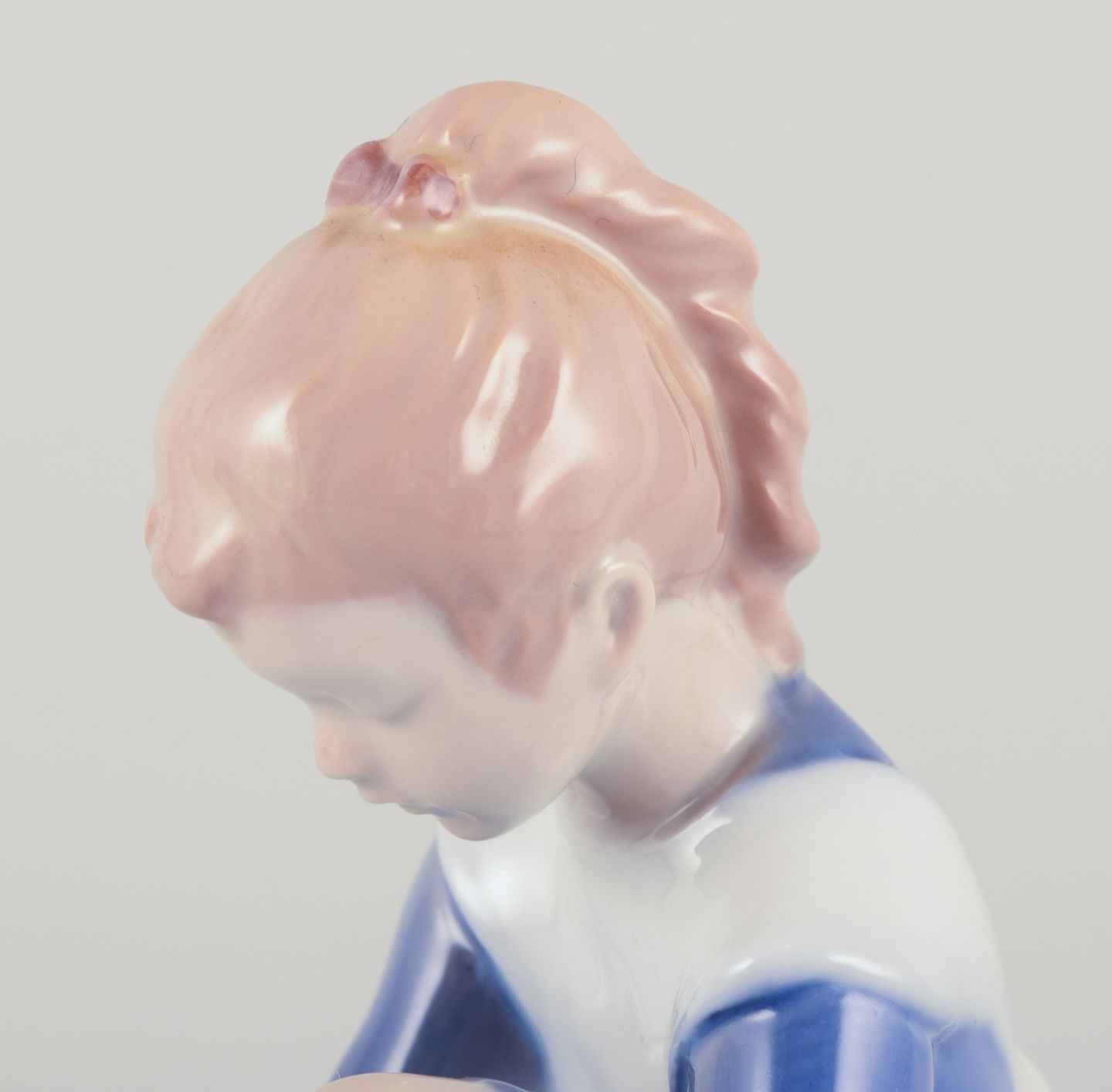 Bing og Grøndahl porcelænsfigur, siddende pige binder snørebånd.