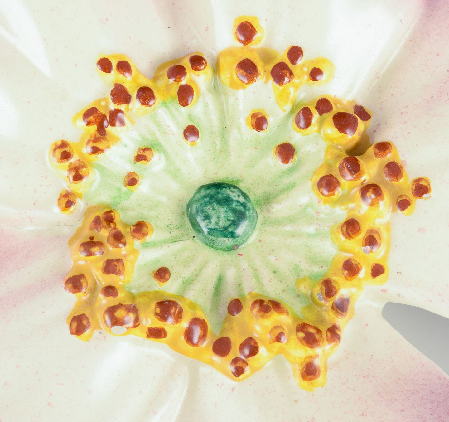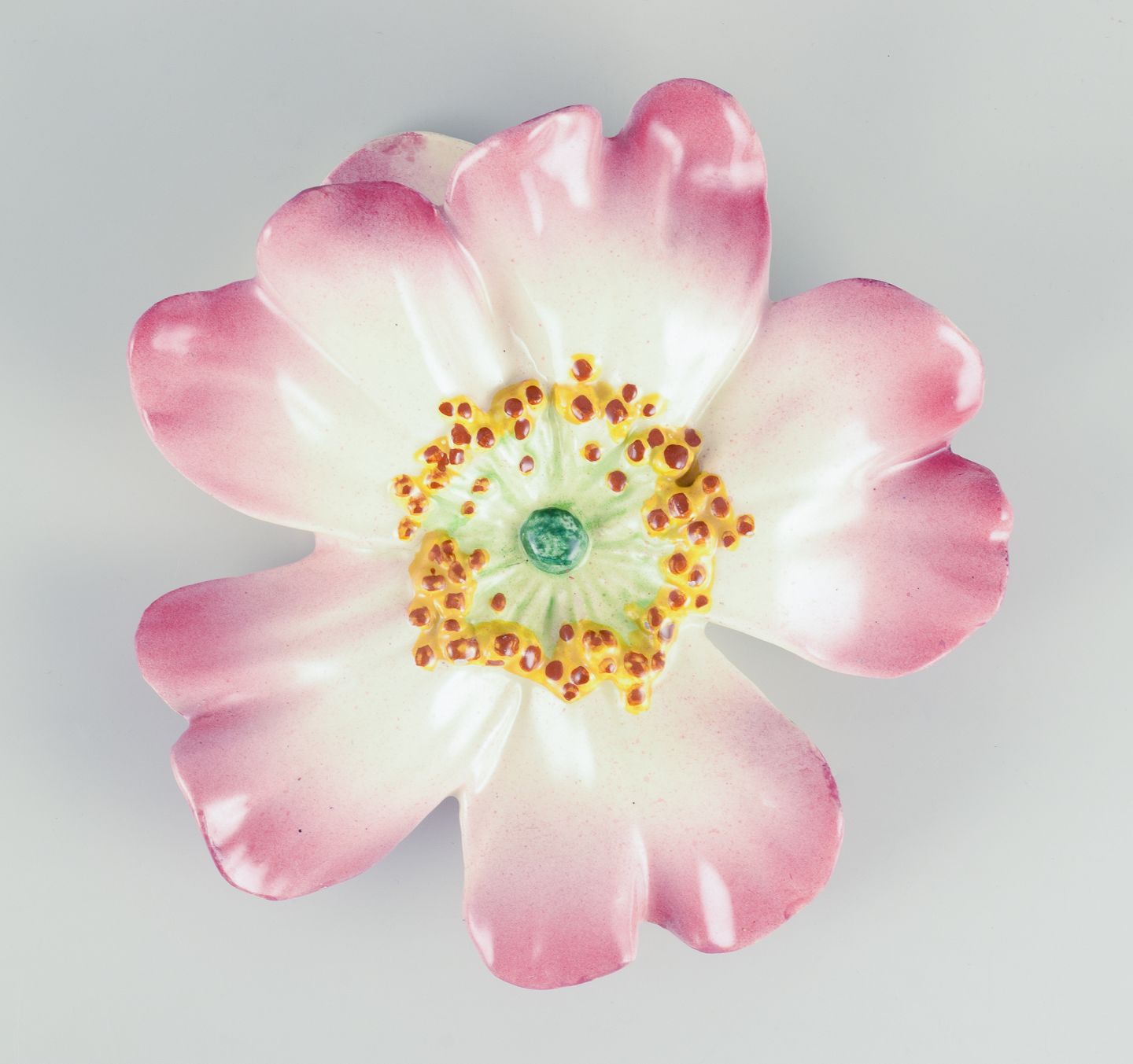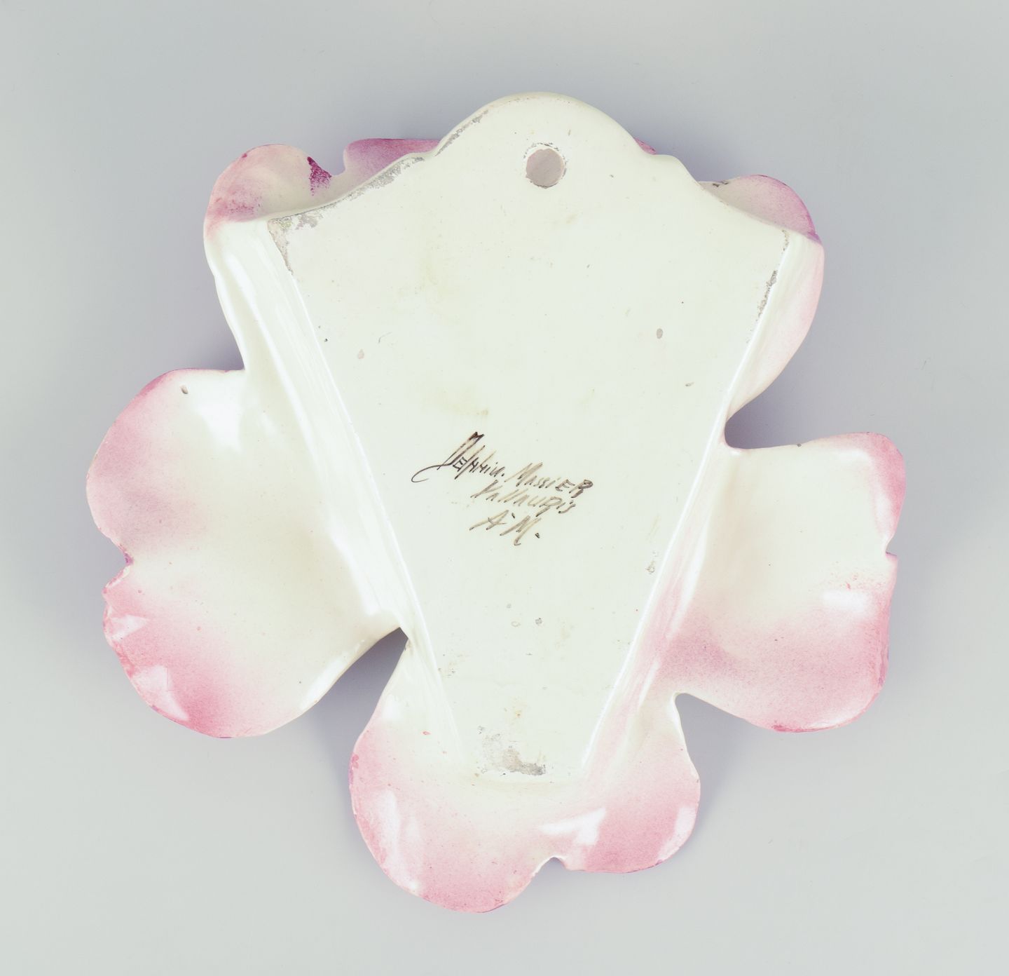 Urtepotteskjuler til væg i keramik, udformet som blomst, håndmalet.