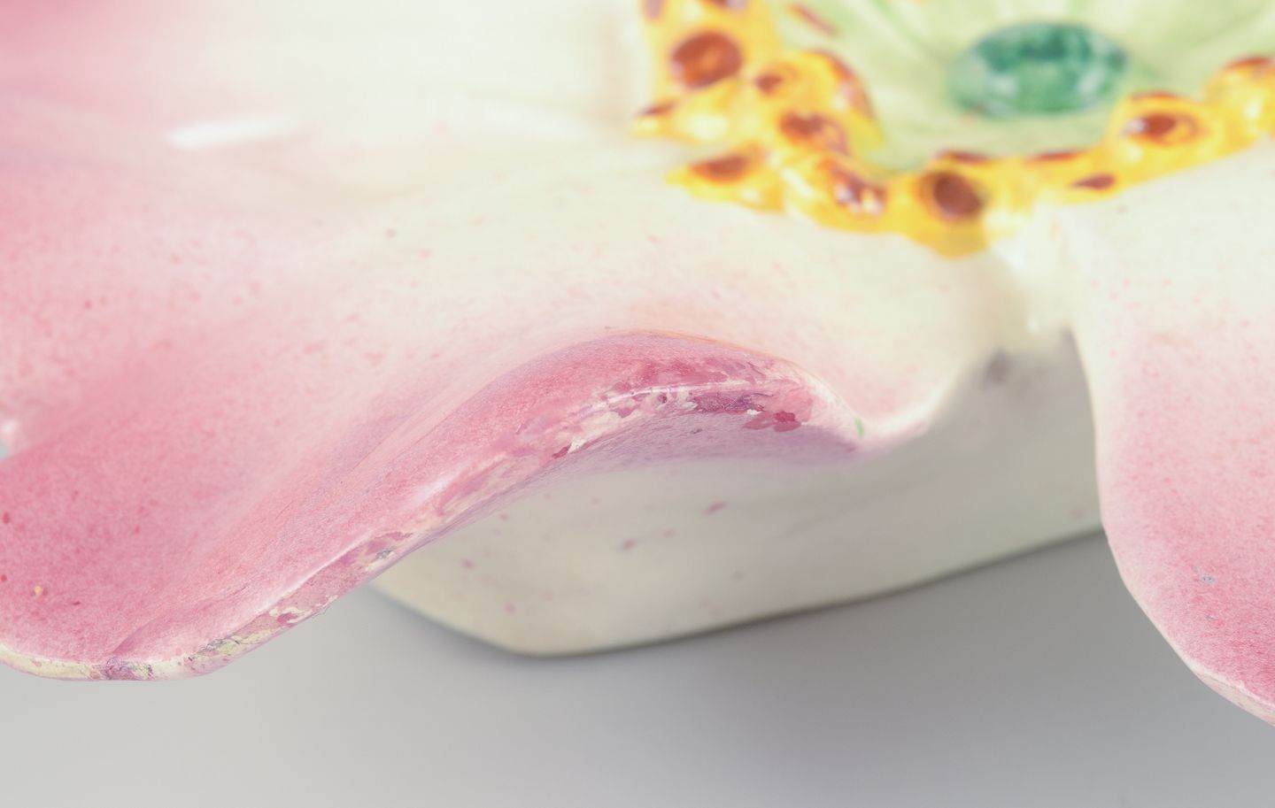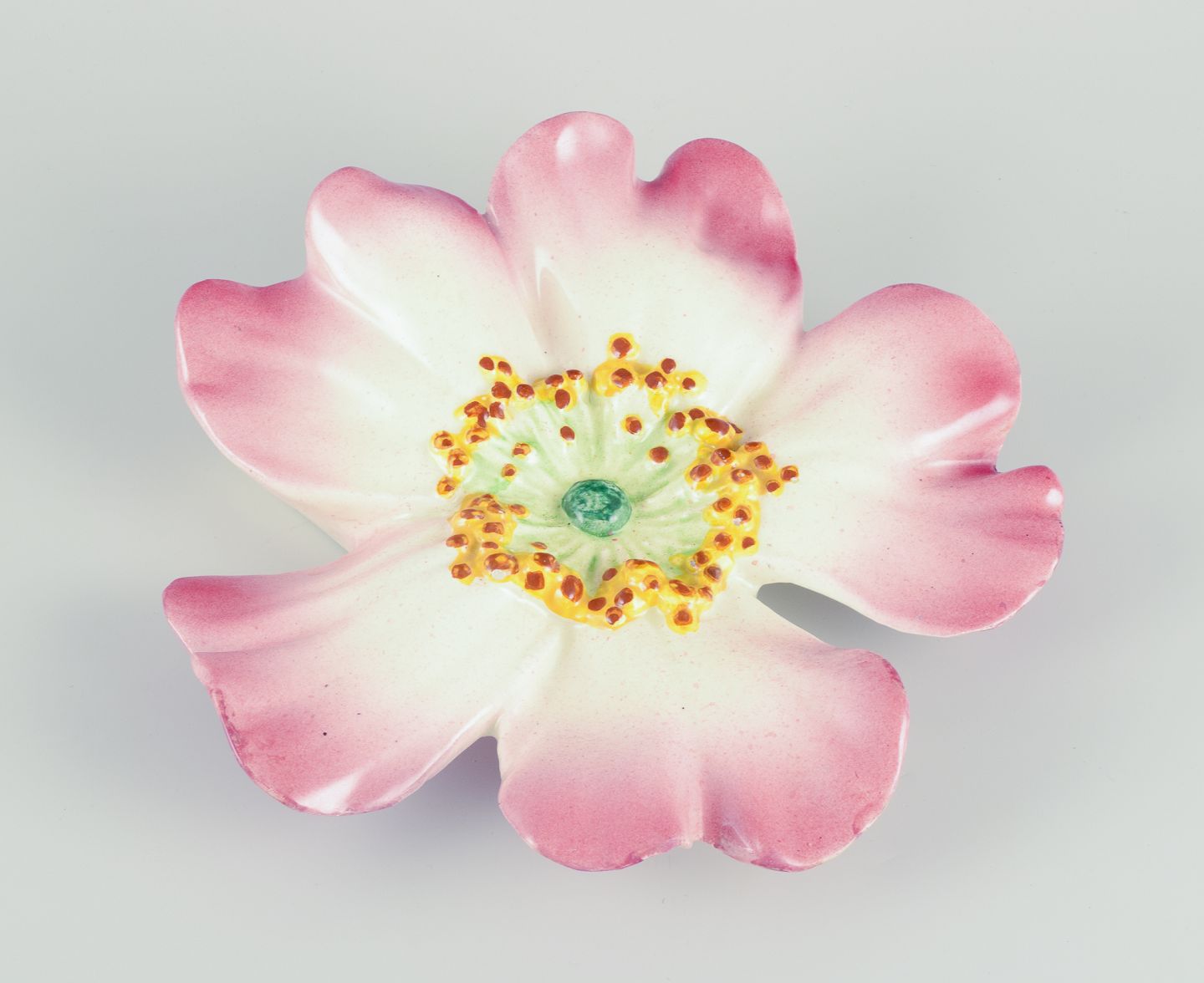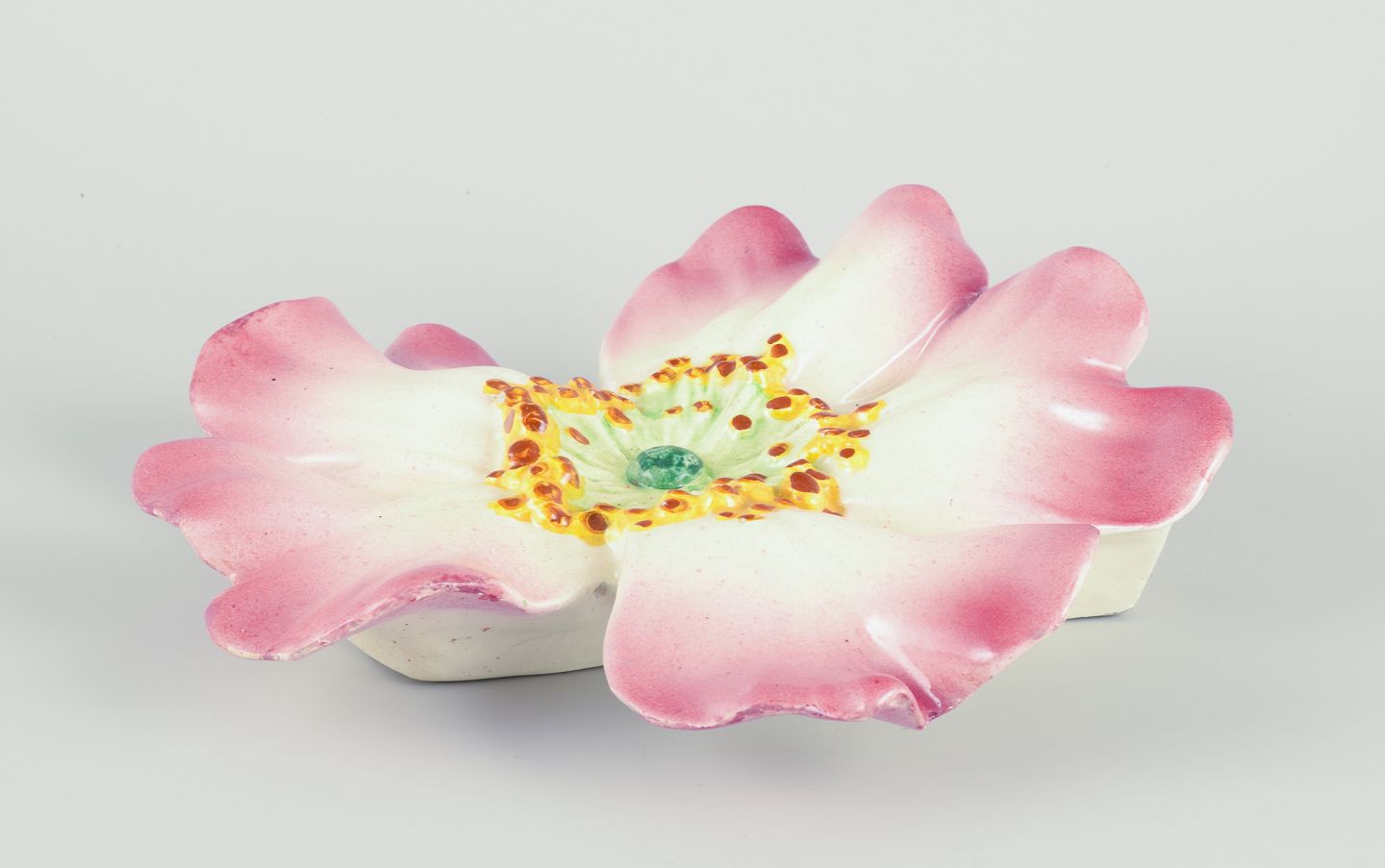 Urtepotteskjuler til væg i keramik, udformet som blomst, håndmalet.