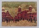 Ubekendt europæisk kunstner. Olie på karton. Snedækket bymotiv med personer i forgrunden. Antageligt østeuropæisk by. 1930/40’erne. Utydeligt signeret. I god stand. Mål: 41,5 cm. x 30,0 cm.