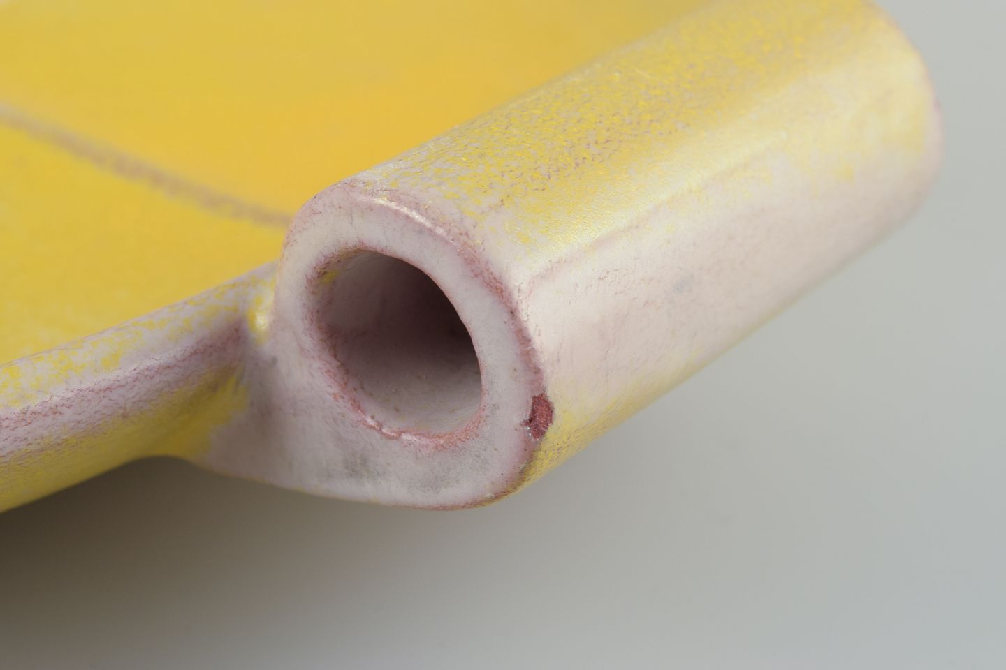 I flot stand, to minimale afslag i glasuren på den ene hank.
