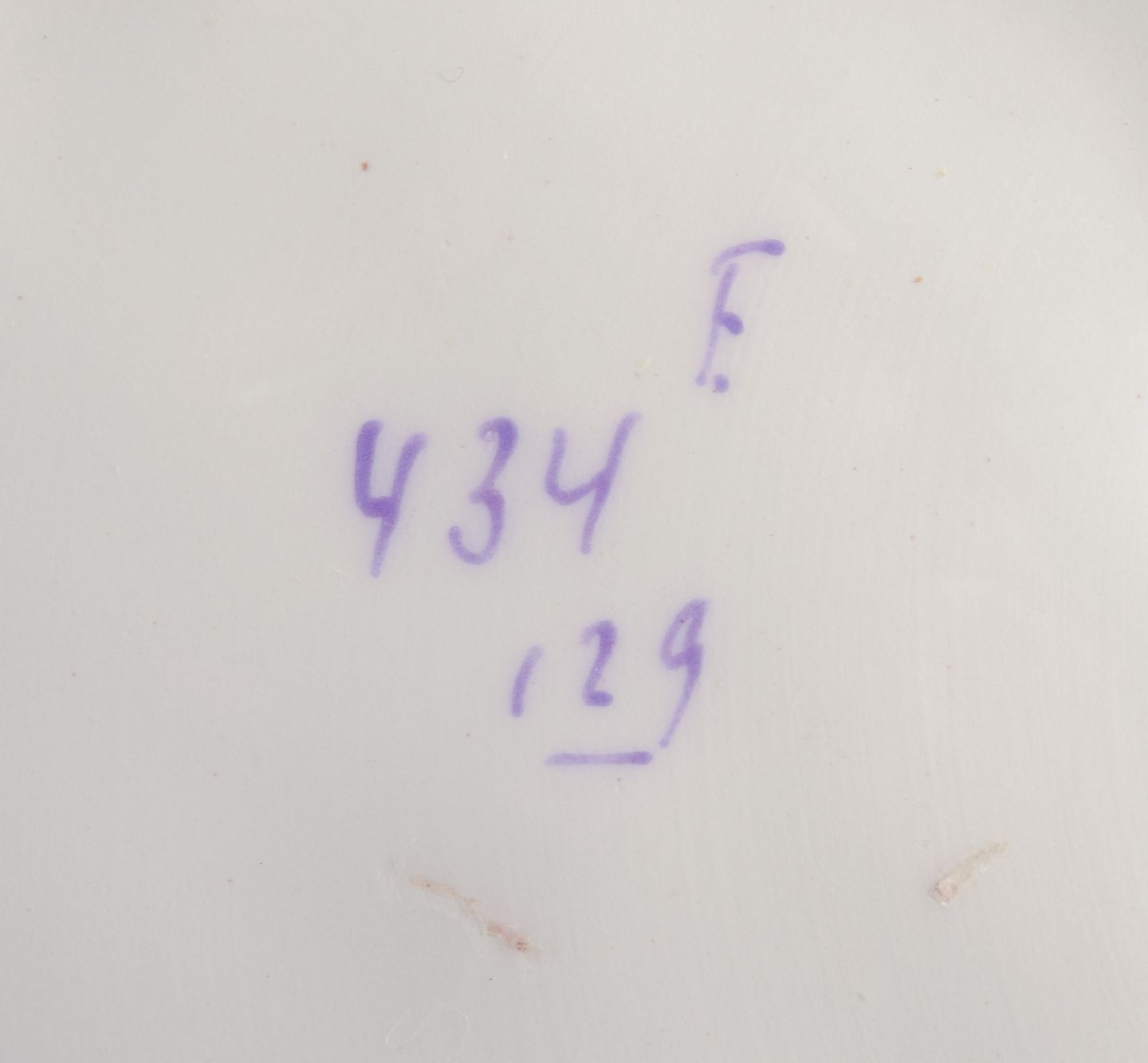 In fine condition, with hairline crack and a small chip at the top of one bowl and a small chip at the top of the other bowl.