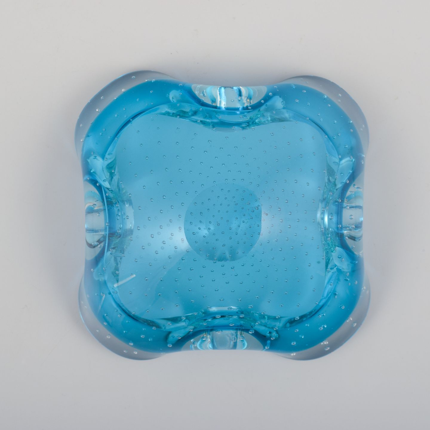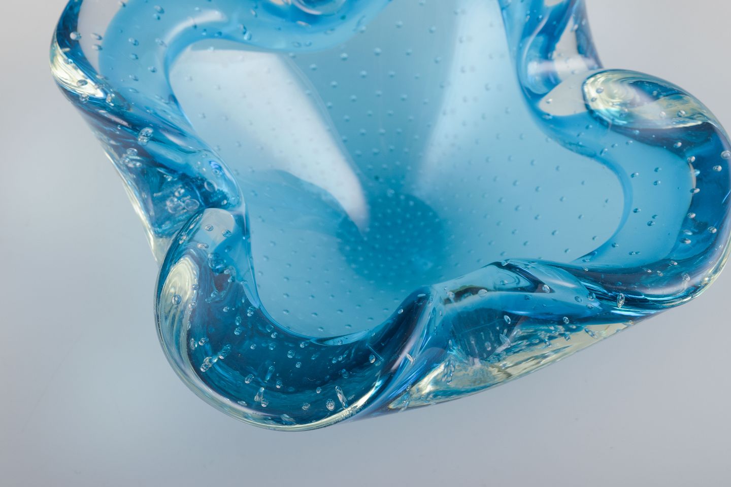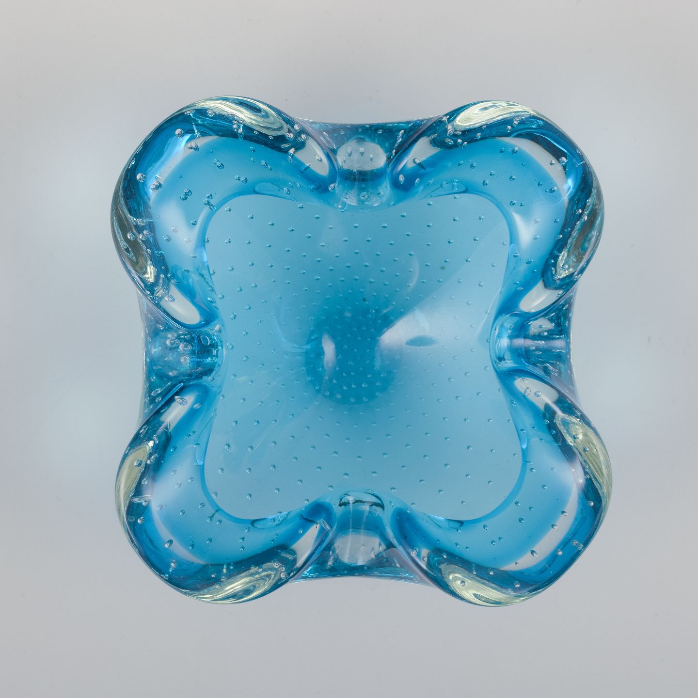 Archimede Seguso for Murano, Italien. Skål i azurblå kunstglas med klar kant.