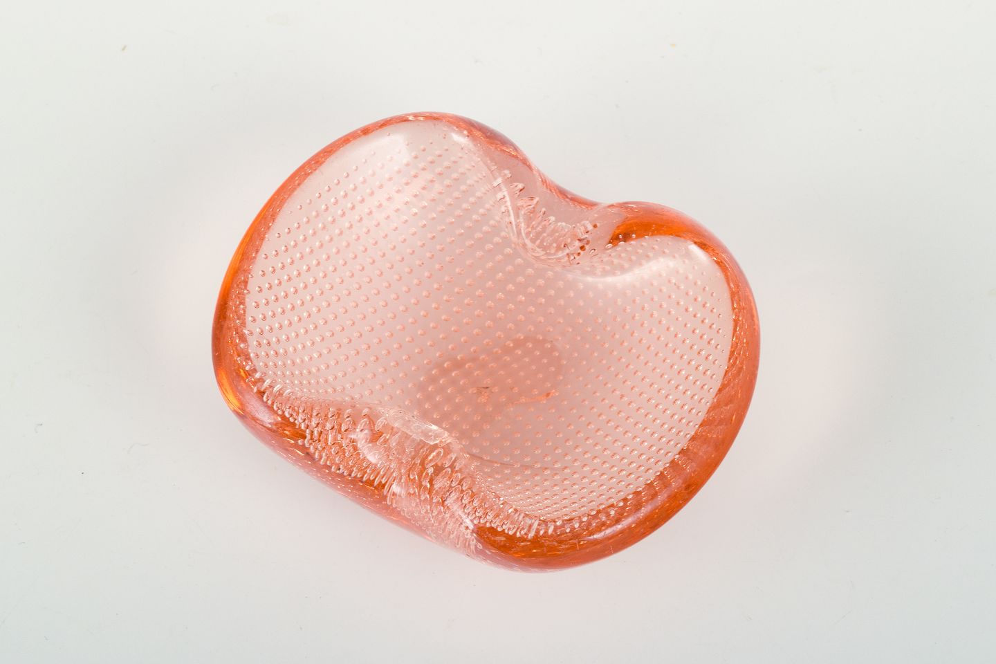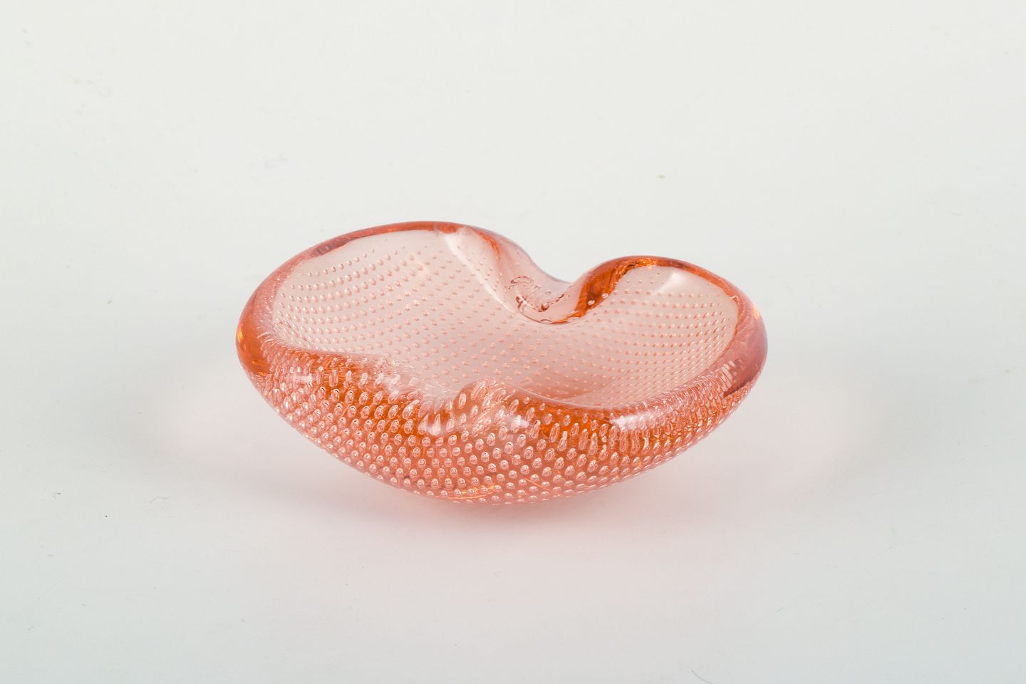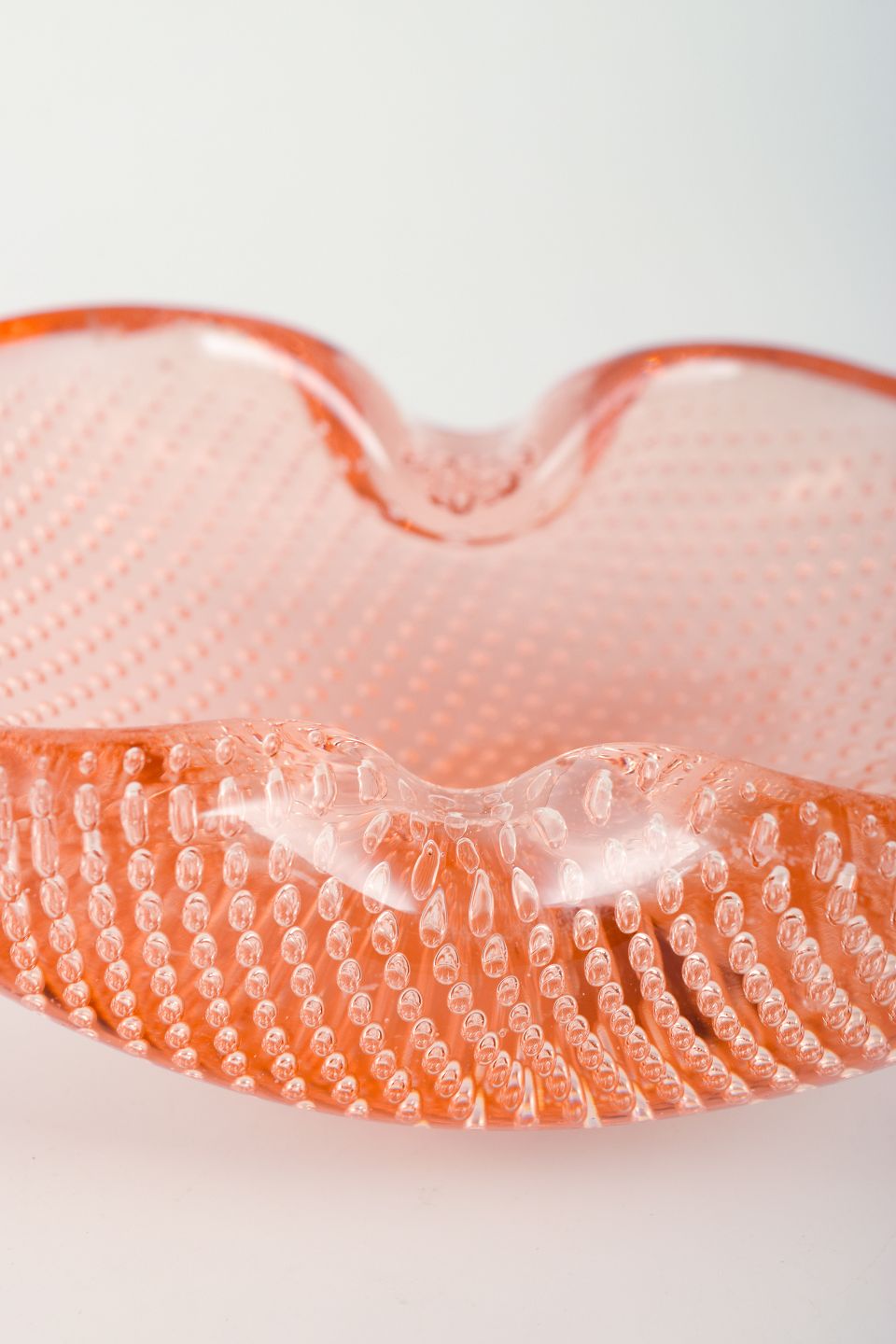 Murano glasskål i rosa med kontrolleret bobledekor (bullicante-teknik).