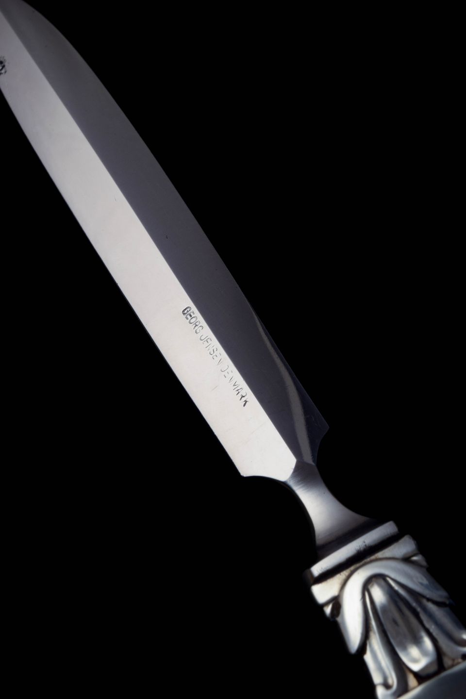 En klassisk skrivebordsgenstand fra Georg Jensen, fremstillet i perioden 1933–1944 med skaft i sterling sølv og blad i rustfrit stål.