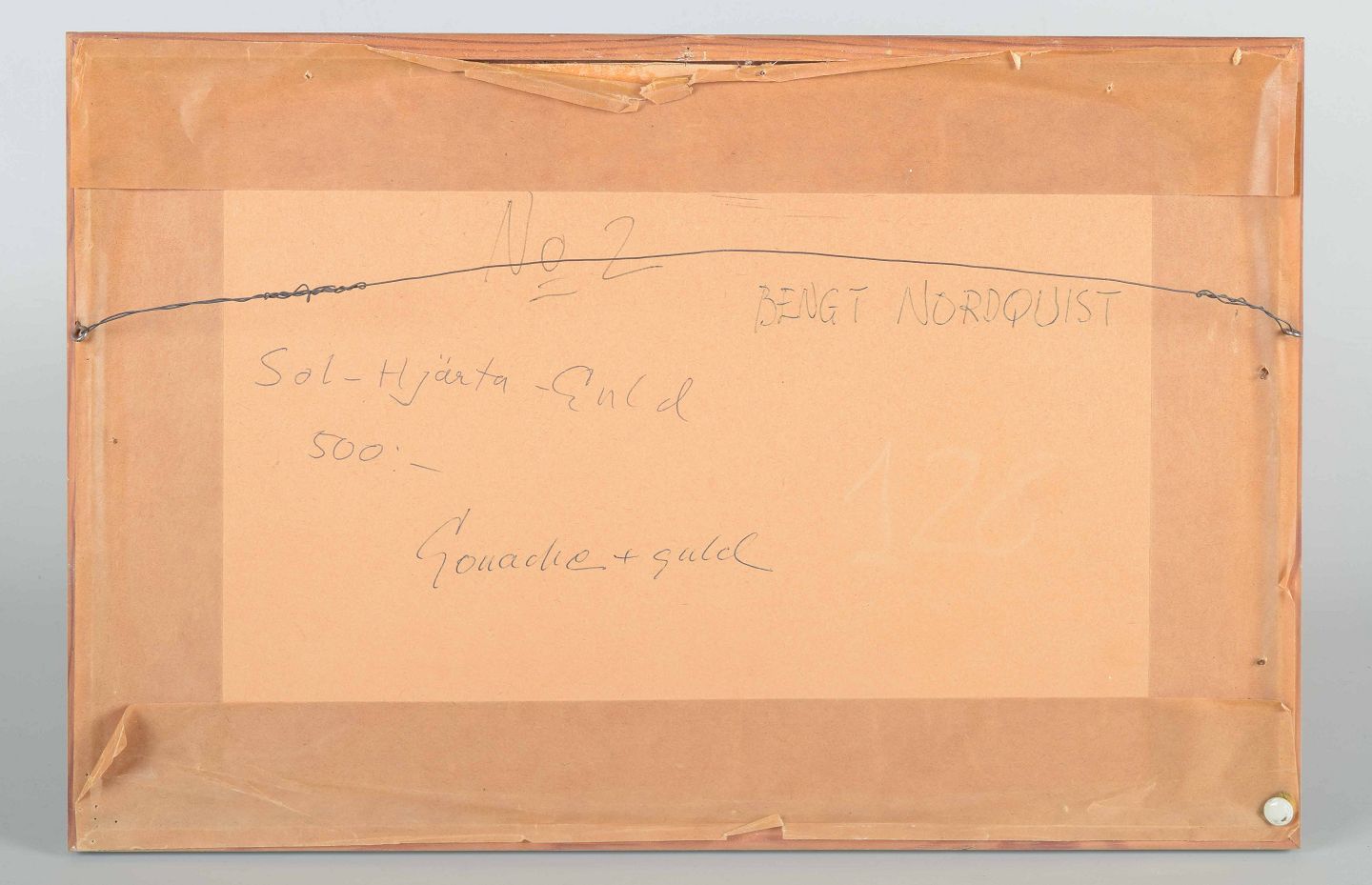 Bengt Nordquist (1927–2010) var en svensk kunstner, kendt for sine abstrakte og koloristiske værker, ofte udført i gouache, akvarel og blandede teknikker. Han skabte stemningsfulde kompositioner med både lyriske og symbolske undertoner. Nordquist var aktiv i 1950’erne–70’erne, hvor han deltog i flere udstillinger i Sverige, og hans værker findes i både private og offentlige samlinger.