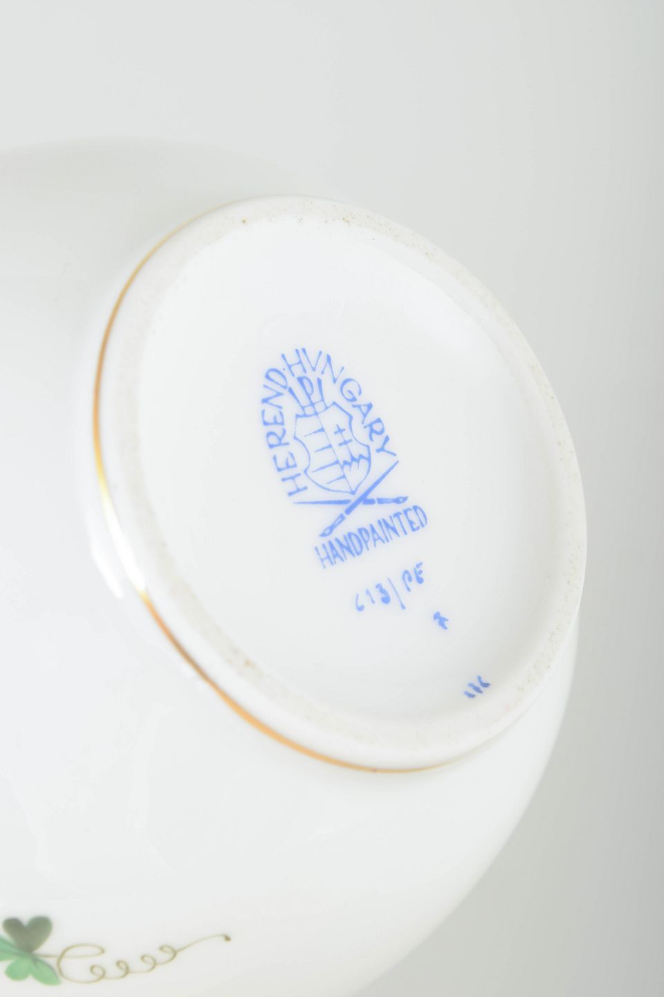 Herend-fabrikken blev grundlagt i 1826 og er internationalt kendt for sit udsøgte porcelæn, ofte med håndmalede dekorationer og plastiske blomsterknopper. I det 20. århundrede videreførte Herend sin tradition for kunstnerisk finesse og håndværksmæssig kvalitet, hvilket har gjort fabrikken til en af Europas førende porcelænsproducenter.