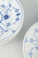 Sæt af fire flade tallerkener i porcelæn, dekoreret i musselmalet riflet mønster i blå underglasur.