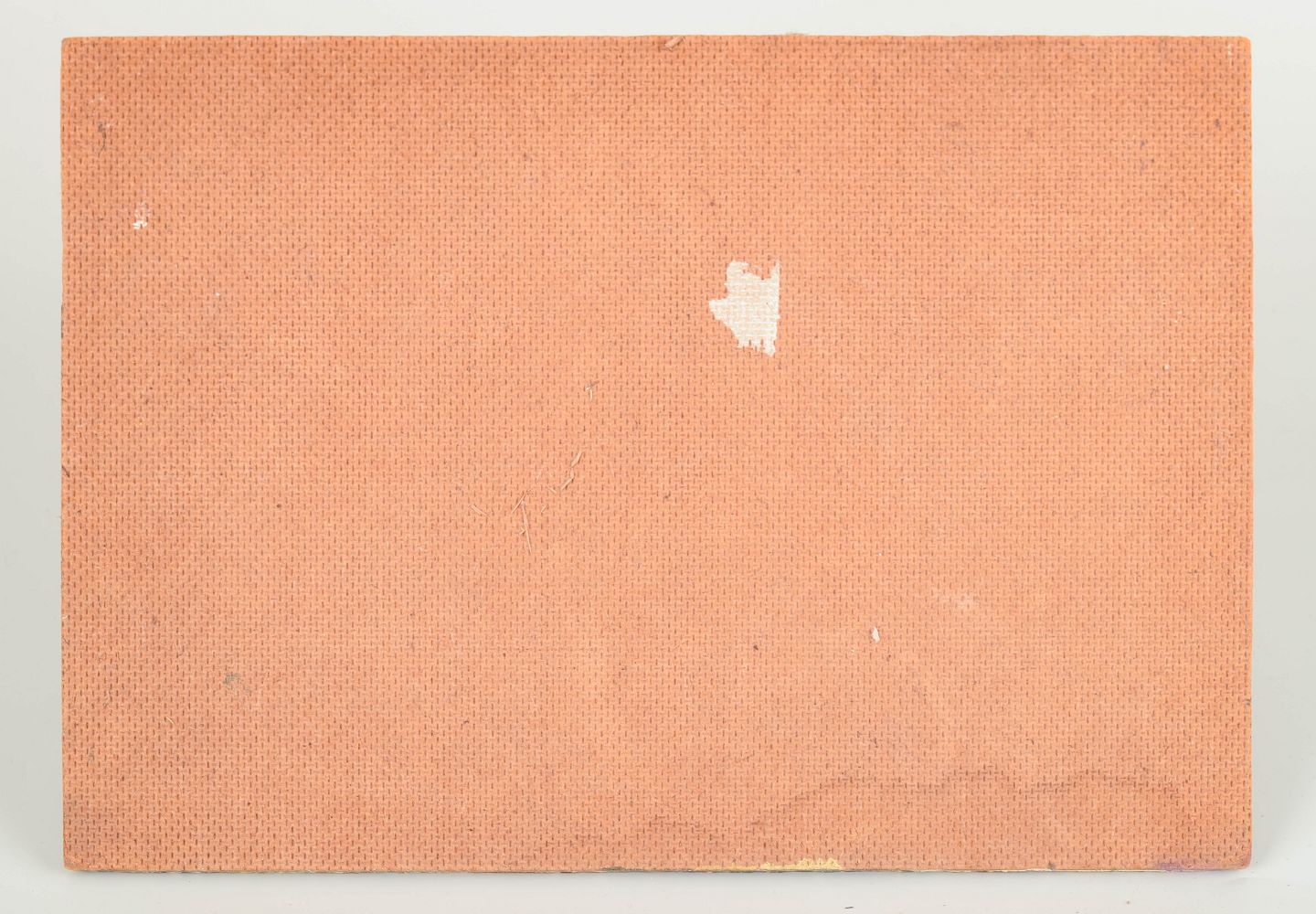 Et råt og ekspressivt abstrakt maleri udført med kraftige, pastose pensel- og spartelstrøg. Farvepaletten domineres af hudtone, jordfarver og mørkeblå/sort i et organisk, næsten landskabs- eller figurativt antydende motiv. Den taktile overflade og kropslige energi i påføringen af malingen peger mod en informel/tafri stil beslægtet med europæisk efterkrigs-ekspressionisme.