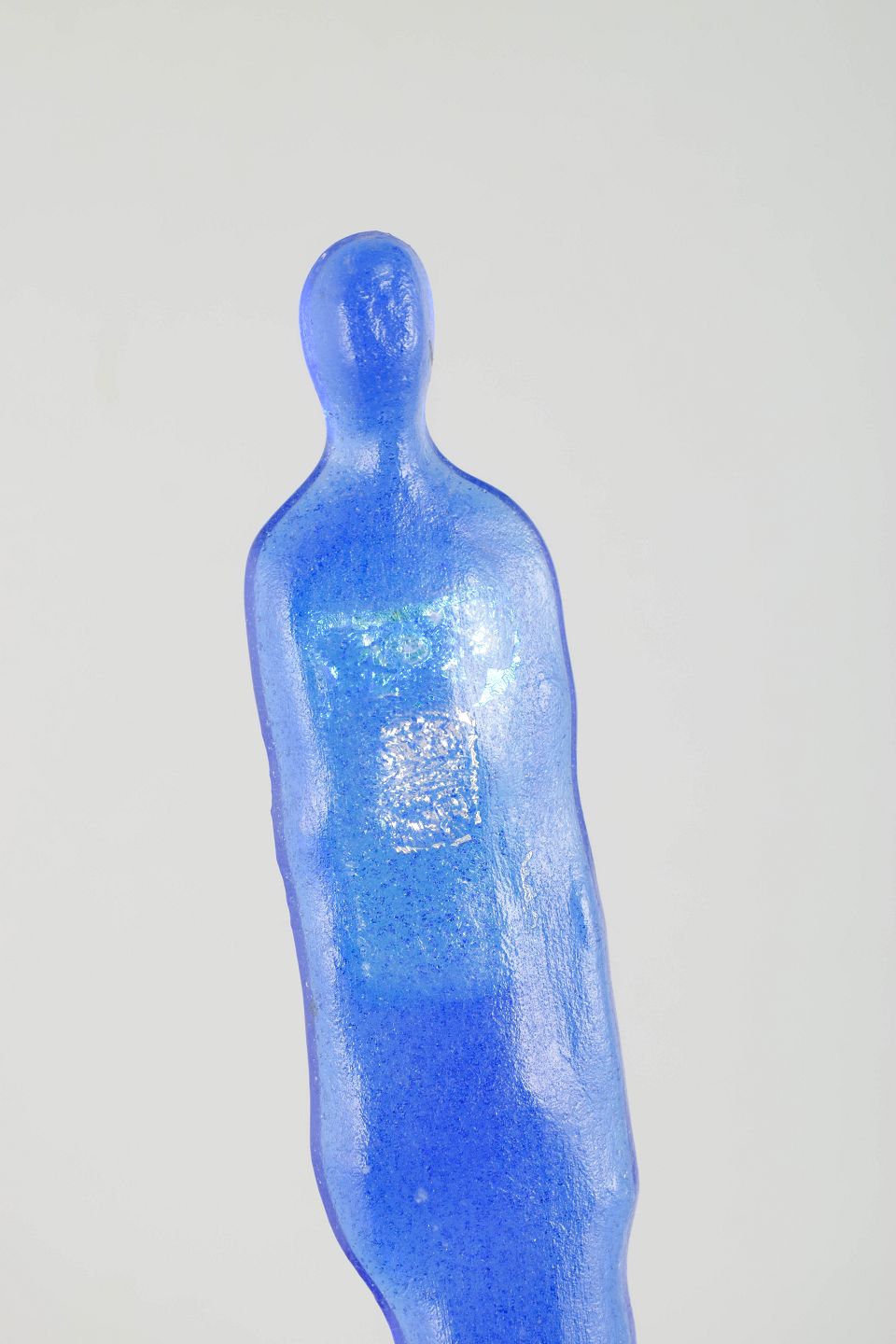 Hand-formed figure in intense cobalt blue glass with a subtle metallic sheen and minimalist silhouette. A sculptural work that merges the human form with Ekegren’s signature experimental approach to colour and texture.
