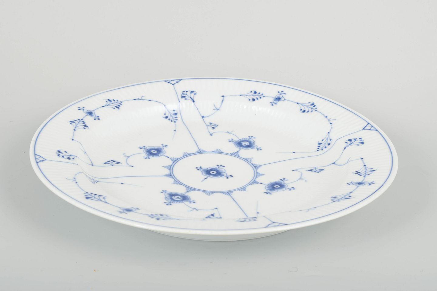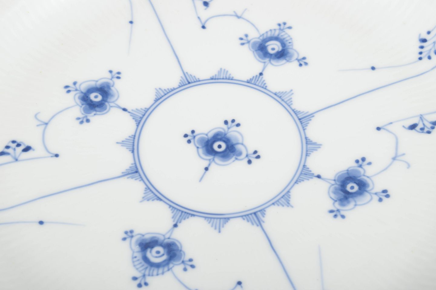 Large and decorative serving dish in the “Blue Fluted Plain” porcelain series, hand-painted in classic cobalt blue on a fluted body. The broad, gently curved form and rich patterning make it a striking example of Royal Copenhagen craftsmanship from the 1920s.