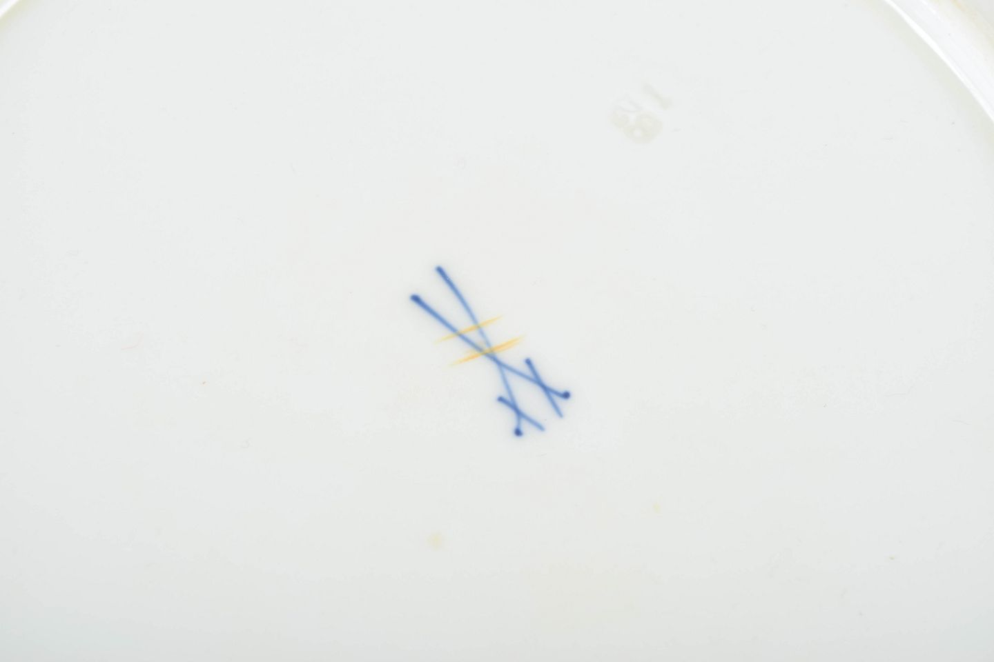 Bemærkning: Stemplet med Meissens korslagte sværd, annulleret med to indridsede streger.
