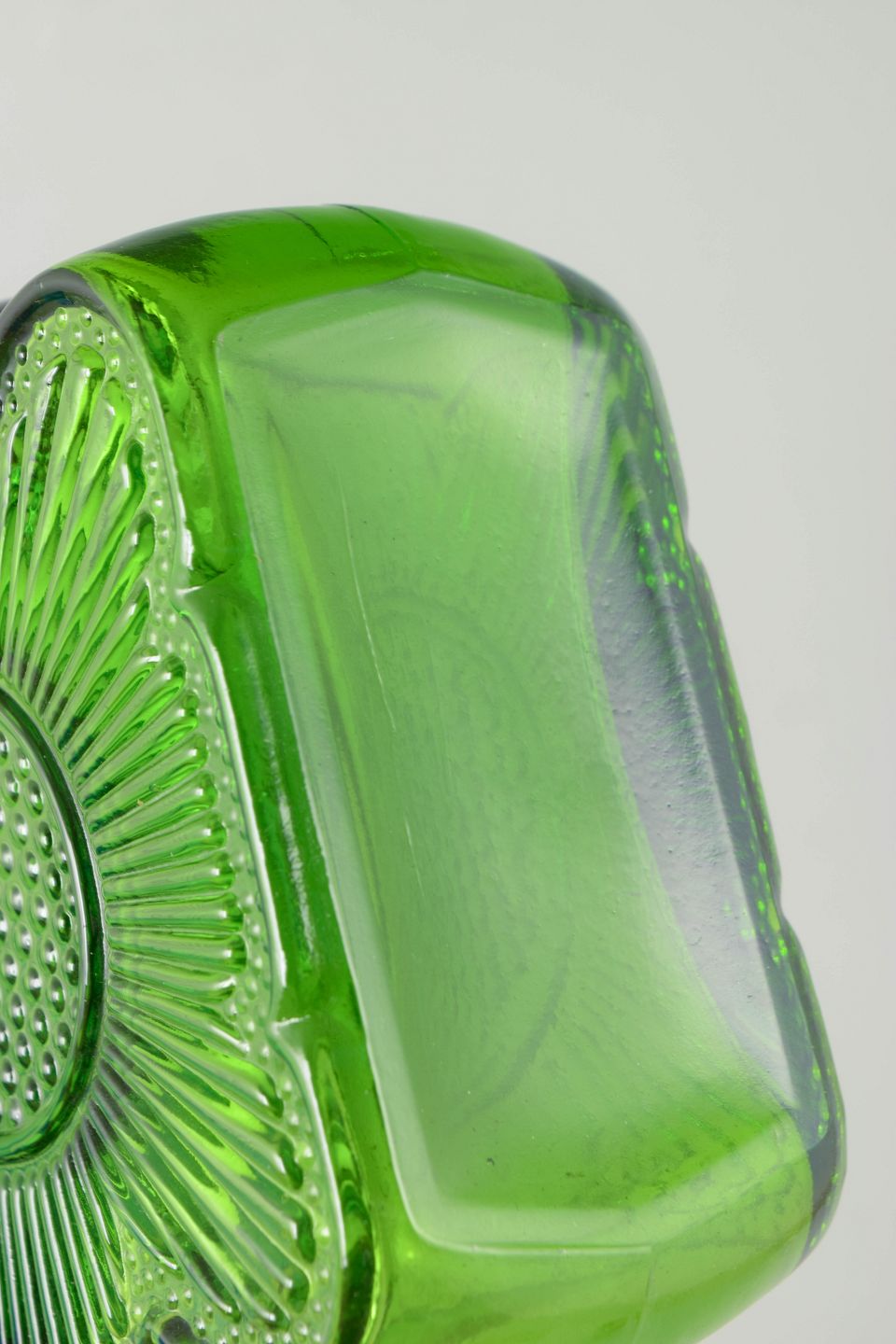 Ikonisk grøn glasvase fra serien Amuletti, designet af Tamara Aladin for Riihimäen Lasi. Modellen er karakteriseret ved sin markante blomsterform og stærke skulpturelle udtryk, typisk for finsk glasdesign i 1970’erne.