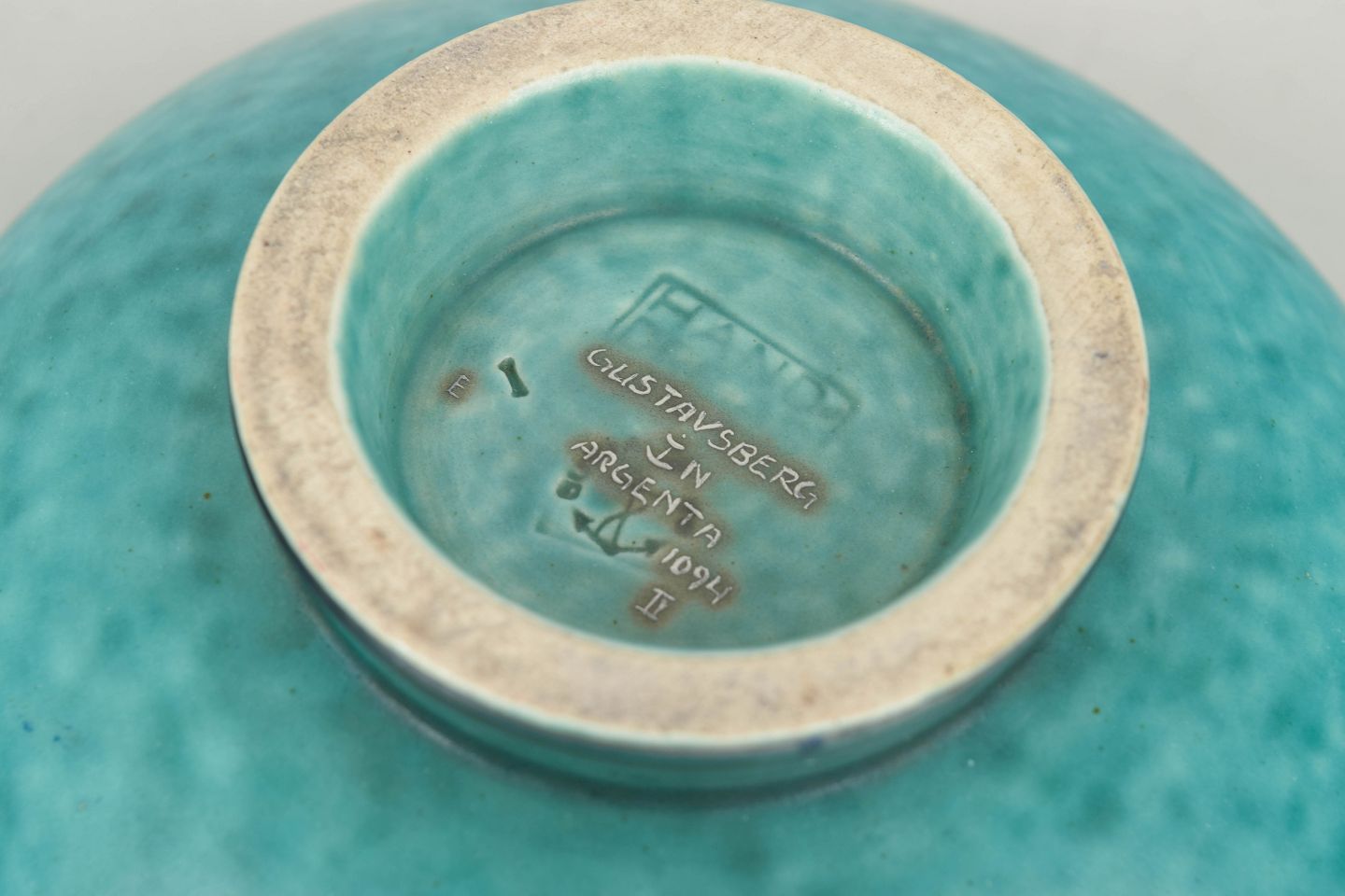 Wilhelm Kåge (1889–1960) served as artistic director at Gustavsberg for several decades and is regarded as one of Sweden’s most influential designers. The Argenta series, introduced in the 1930s, combines vivid glazes with sterling-silver inlays and remains highly sought after among collectors today.