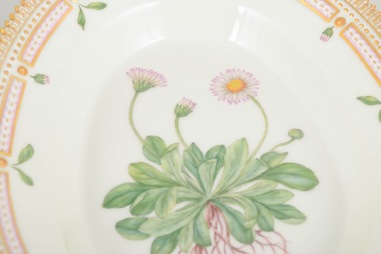 Bio: Flora Danica-stellet blev introduceret i 1790 og regnes blandt Royal Copenhagens mest prestigefyldte produktioner. Dekorationerne er baseret på det monumentale botaniske værk Flora Danica og er kendt for deres høje detaljerigdom og håndværksmæssige kvalitet.