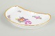 Buet fad i hvidglaseret porcelæn med håndmalet blomsterdekoration i serien Saksisk Blomst, indrammet af forgyldt kant; model 4/1466. 1. sortering, ca. 1910’erne.