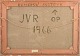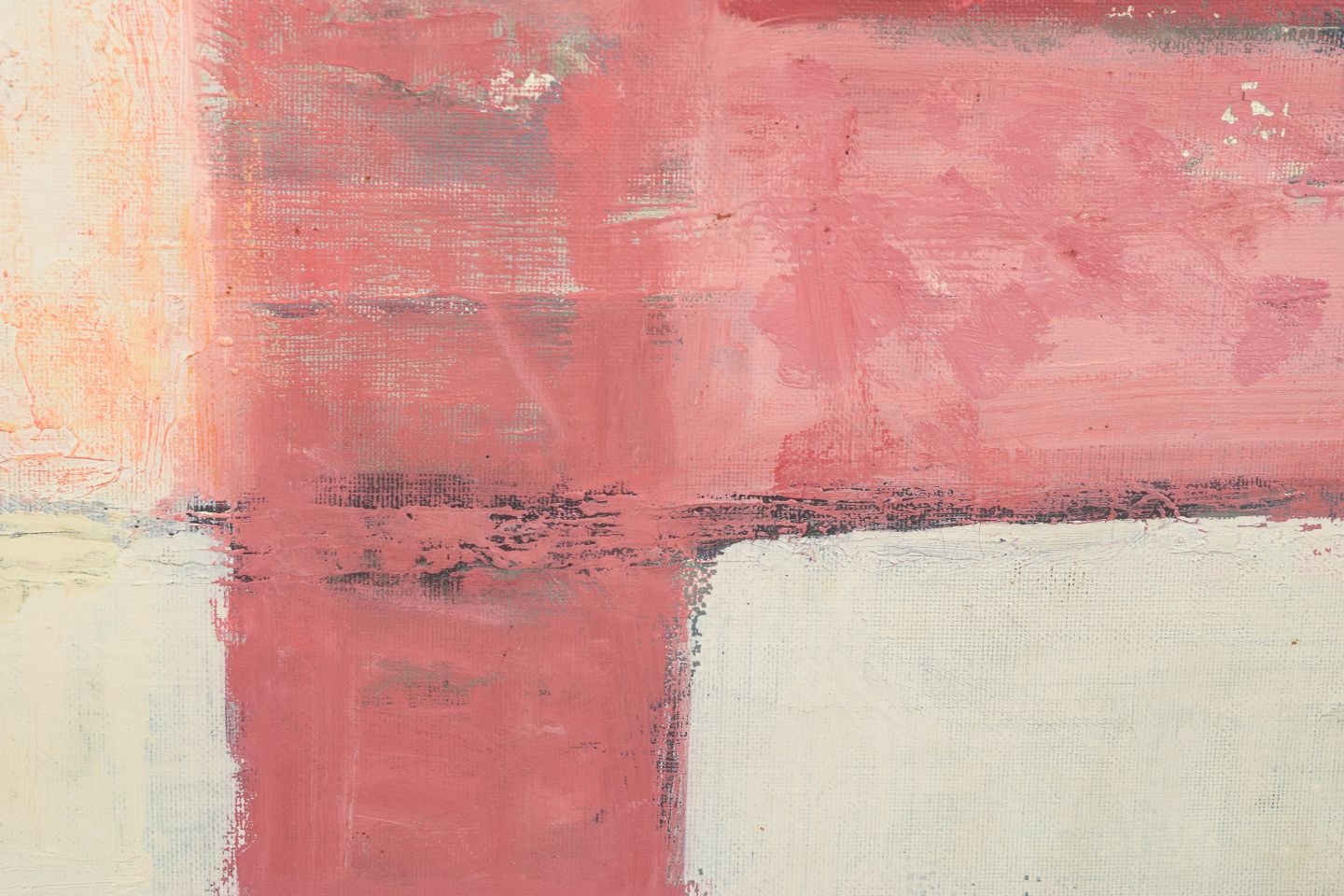 Abstract composition executed in oil on canvas with geometric and architectural forms in warm red and pink tones, signed JVR and dated 1966.
