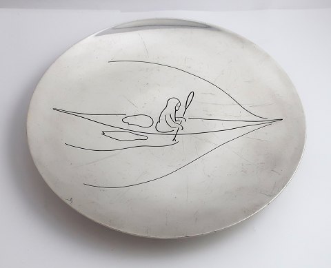 Danish work. Crystal bowl with hammered silver lid (830). Diameter 16.5 cm. Height 14 cm. Produced 1919.