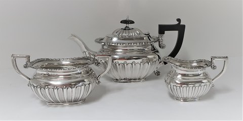 Kaffeeservice. Silber (830). 3 Teile, bestehend aus Kaffeekanne, Sahne- und Zuckerdose. Die Höhe der Kaffeekanne beträgt 22 cm. Produziert 1919.