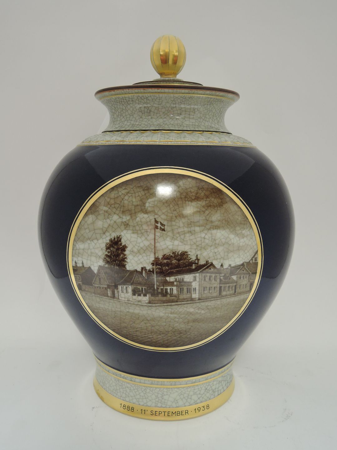 Royal Copenhagen. Craze Vase with lid, Blue. Height 41 cm. (1 quality).