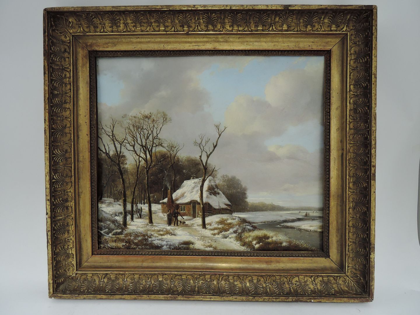 Hendrik van the true Bakhuyzen (1795-1860). Netherlands. Winter scene with walking couple. Signed H. v. D. P. Bakhuyzen. Dimensions 35 x 41 cm
