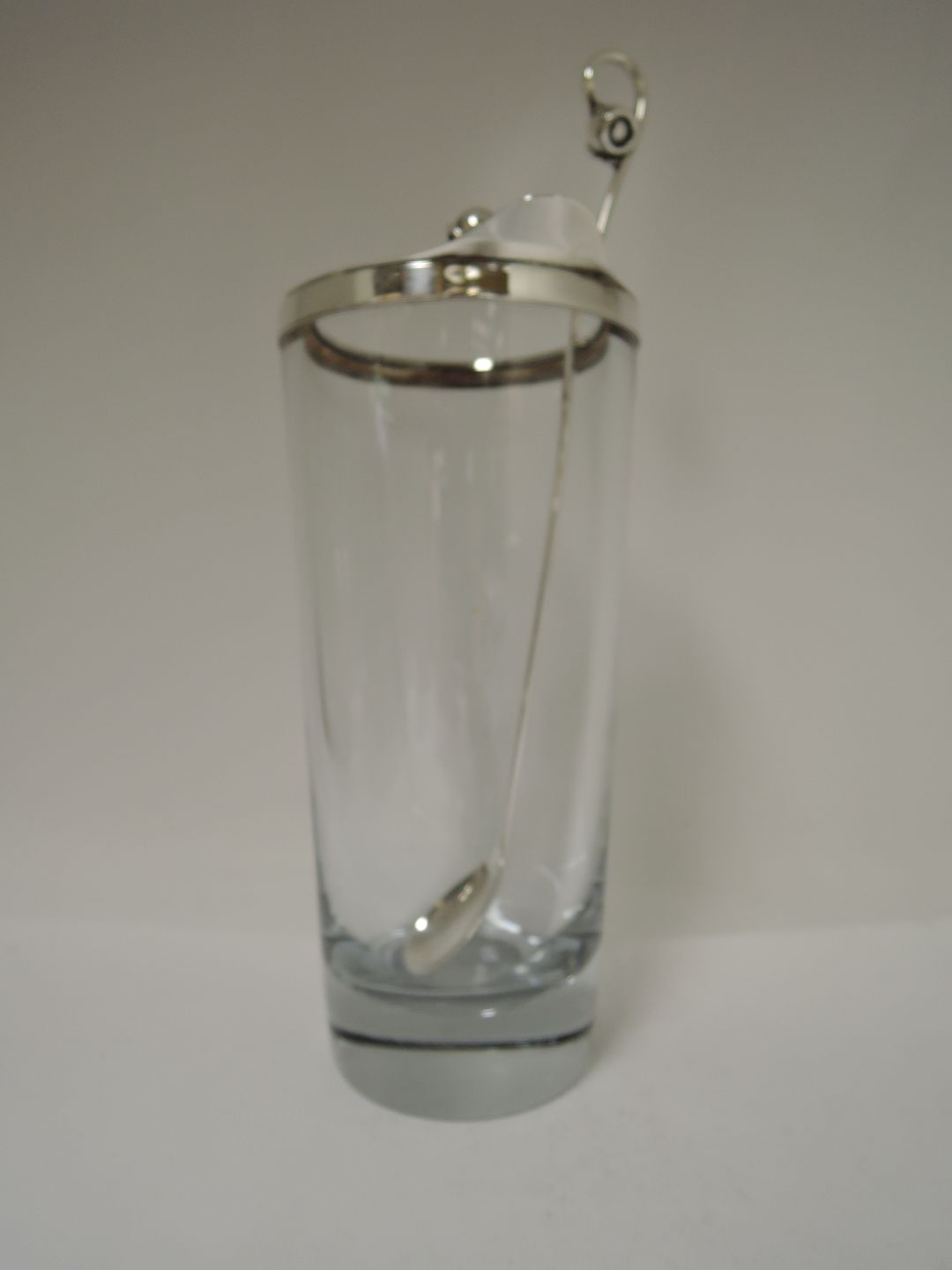 DGH. Cocktail shaker with spoon. Sterling (925). Glass with silver edge. Height 24 cm.
